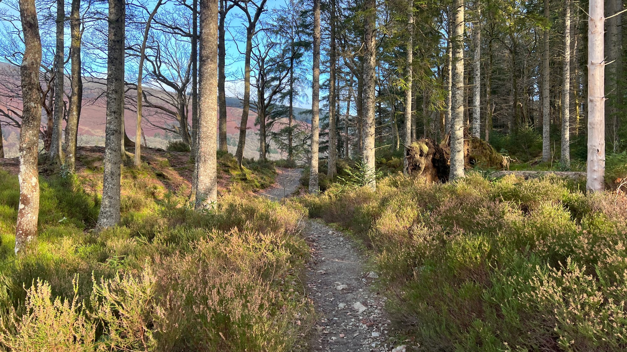 We spent the day walking towards Aberfoyle from home. Why? To meet Sarah out of work! We loosely followed the ‘8-mile loop’, trying to keep as close to Loch Ard as possible. It’s a simple route, but we made many detours down trails and to follow animal tracks to ‘explore’. Ard Forest is beautiful this time of year!