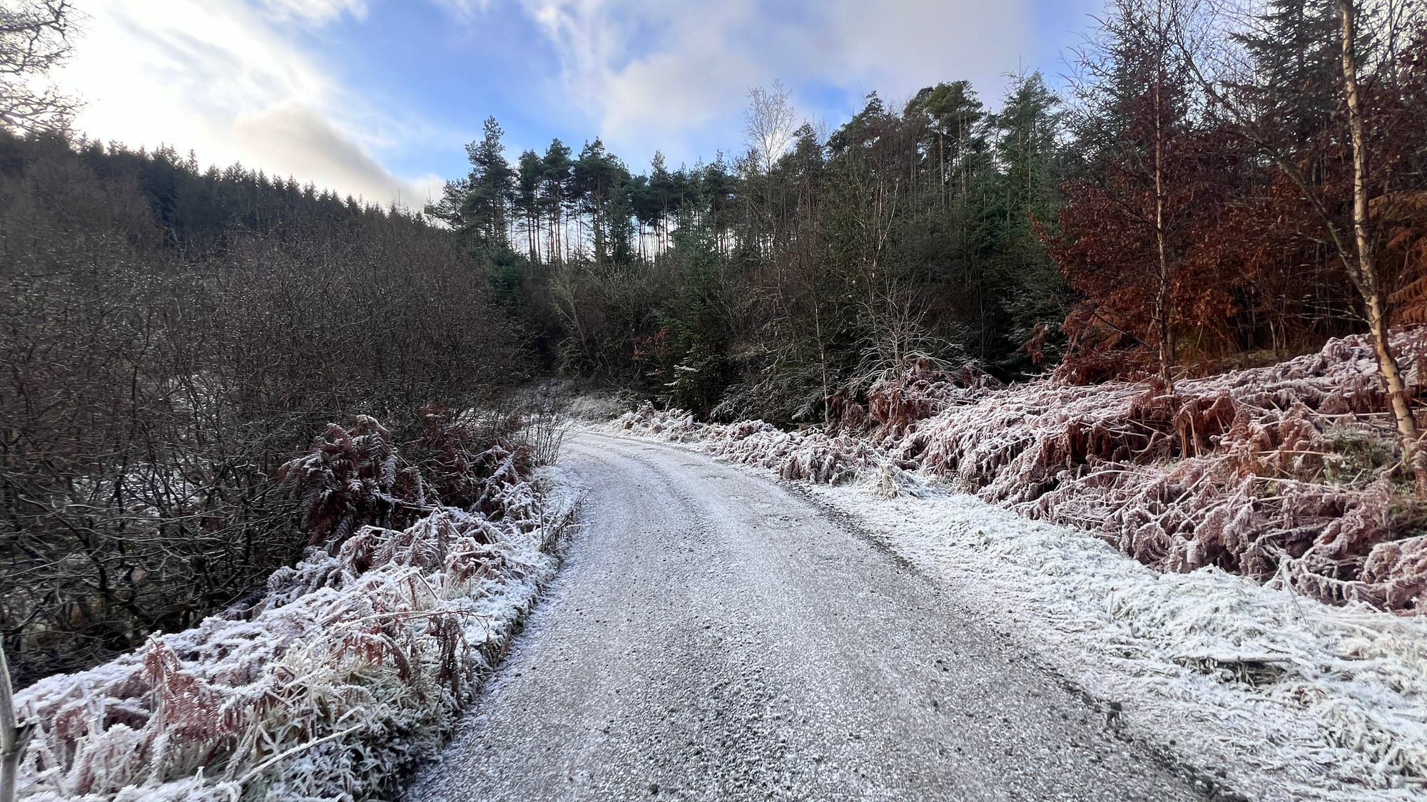The frost and ice crystals clung to the withered remains of ferns and grass, growing outwards, creating miniature ice forests. Eve and I spent a lot of time getting some good macro photographs. None of them does the intricate beauty of the formations any justice. We tried, however!