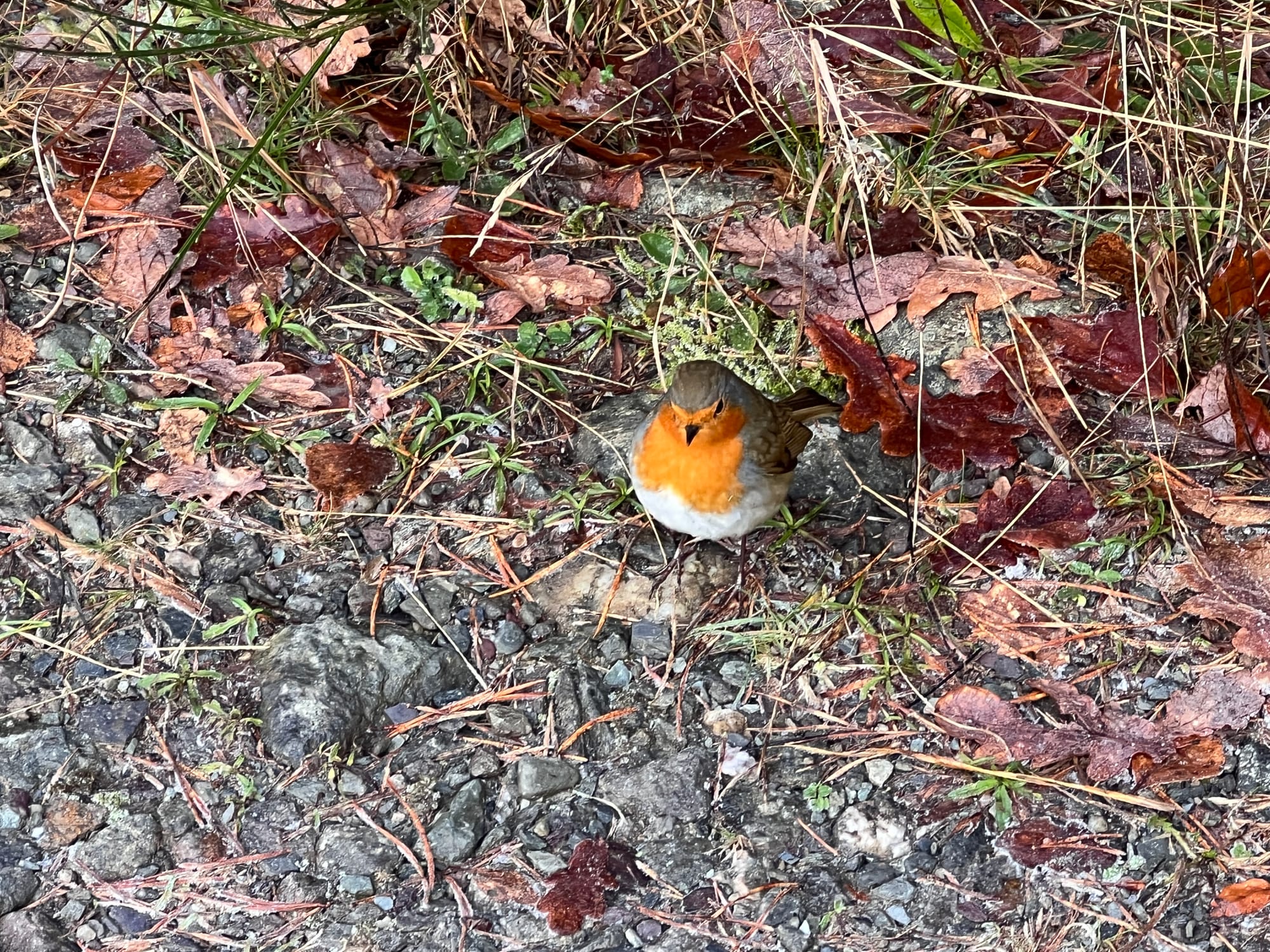The number of robins we spotted was surprising. We counted at least 20 and one red squirrel. A very friendly robin came within touching distance as we ate our lunch. Eve and I fed it some of our sandwiches.
