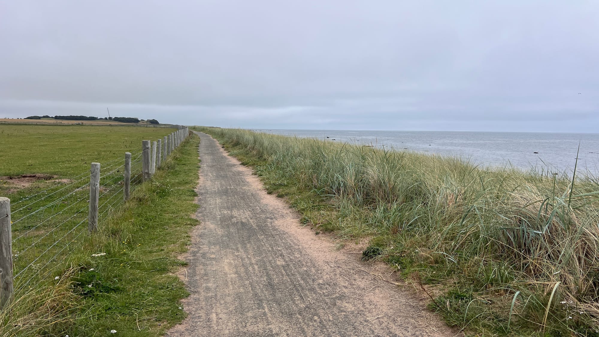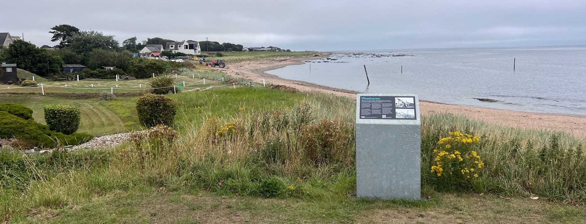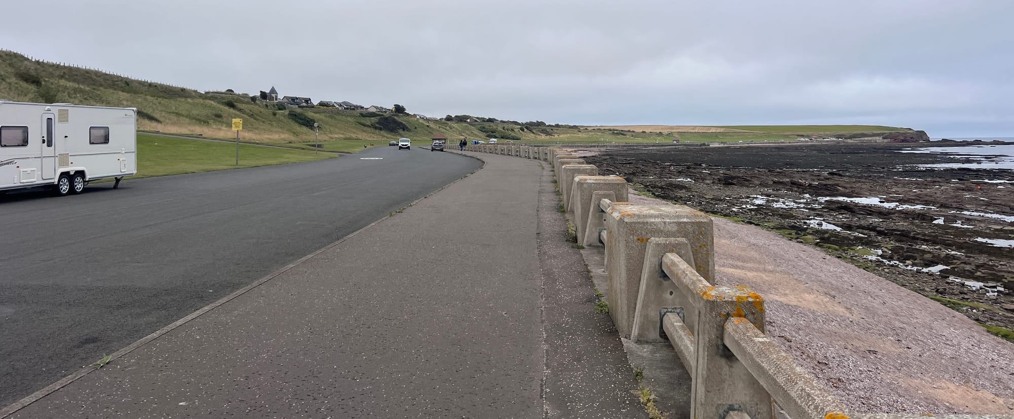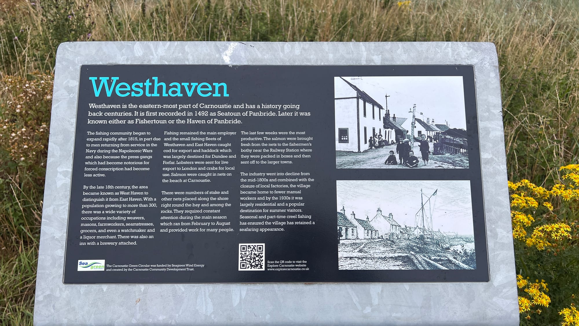 Westhaven lies on the east side of Carnoustie and boasts a rich fishing history. However, over recent days, I have spent much of my time on trivial tasks, neglecting to research the area to talk to Eve about while we walk. I often regret this and really should dedicate more time to it as we prepare for our walks around the UK coast!