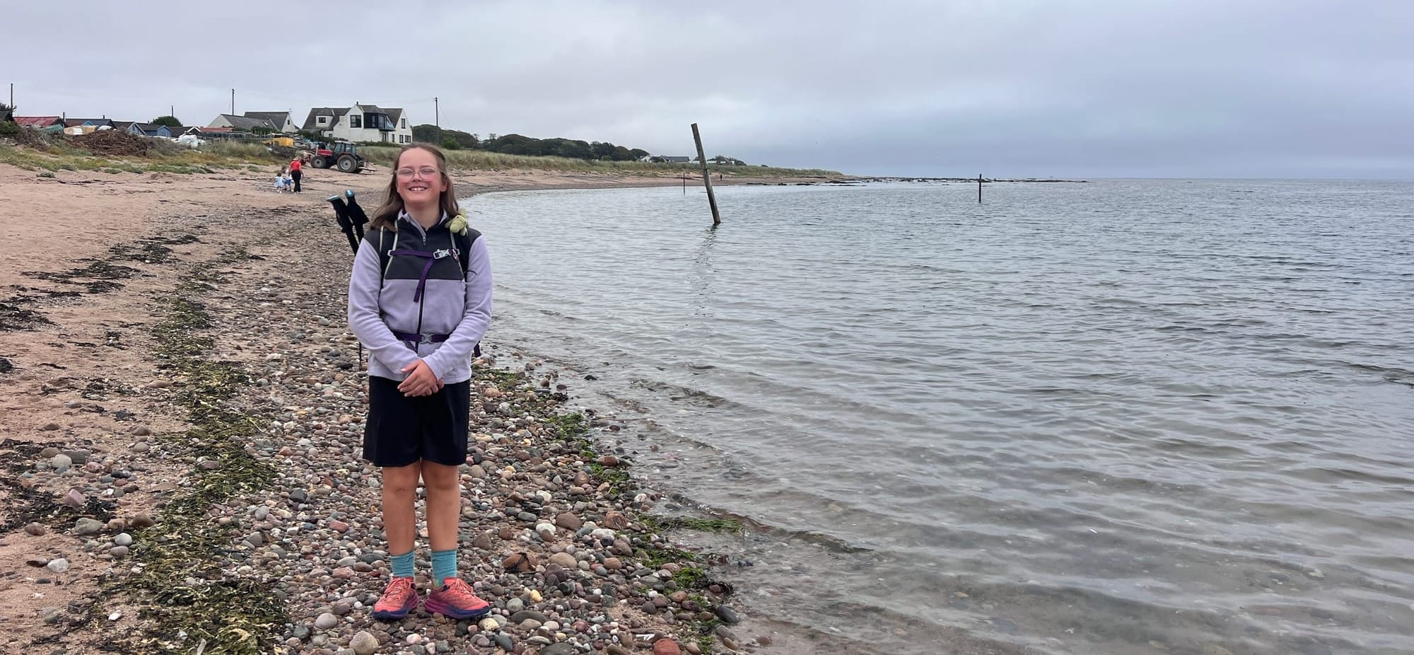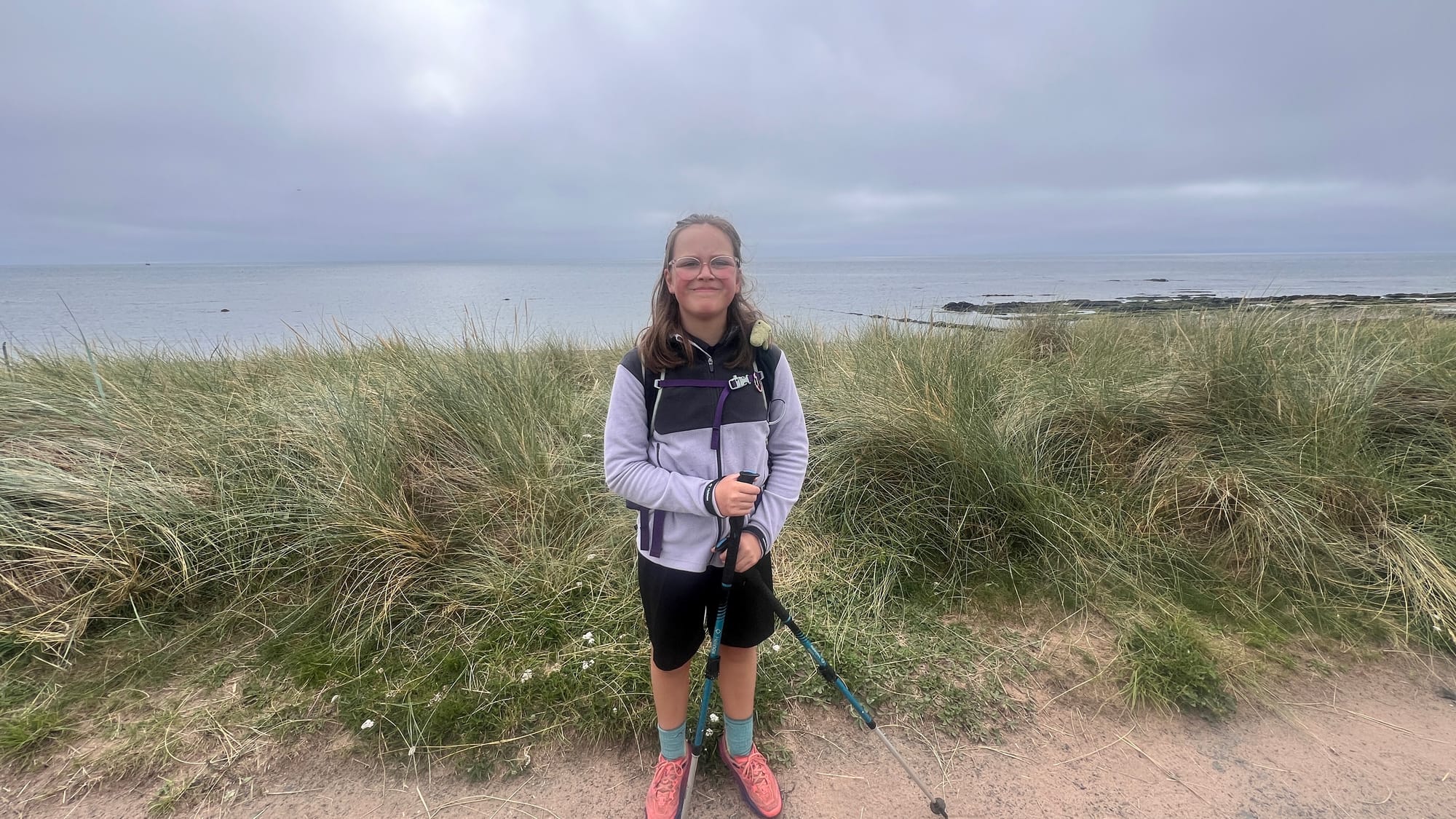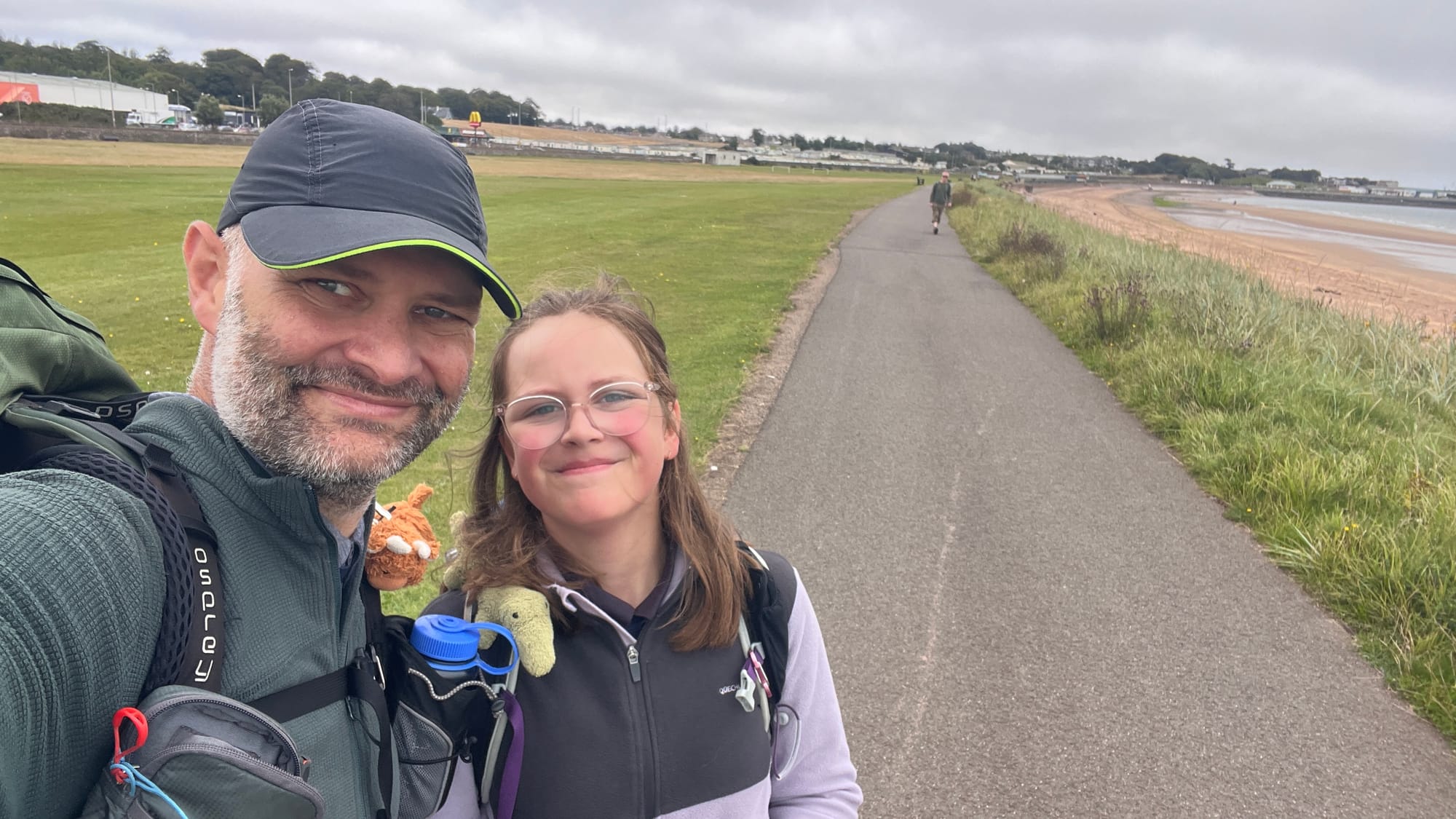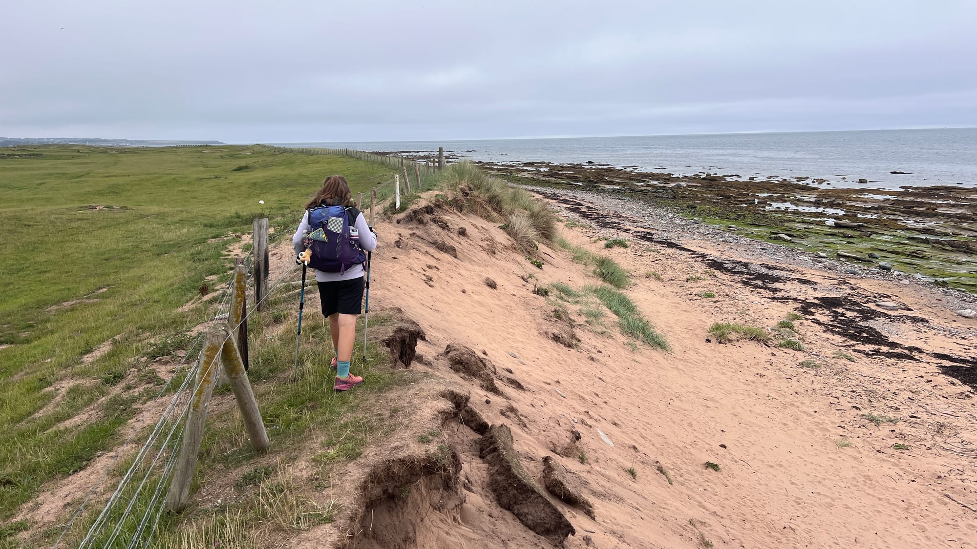 Arriving at Carnoustie, Westhaven, it was still early in the morning. A few dog walkers, a man reading a book sitting on a bench, and a cold wind blowing off the sea. It didn't feel like the height of summer. But it felt good, refreshing, especially after the two hours of driving in the car to get here! We couldn't wait to get going! We were excited and chomping at the bit to start walking and get sand on our shoes... Sarah had to keep telling Eve to come back and 'calm down' as I prepared our backpacks, switched on the satellite trackers, and drank the last dregs from my flask.