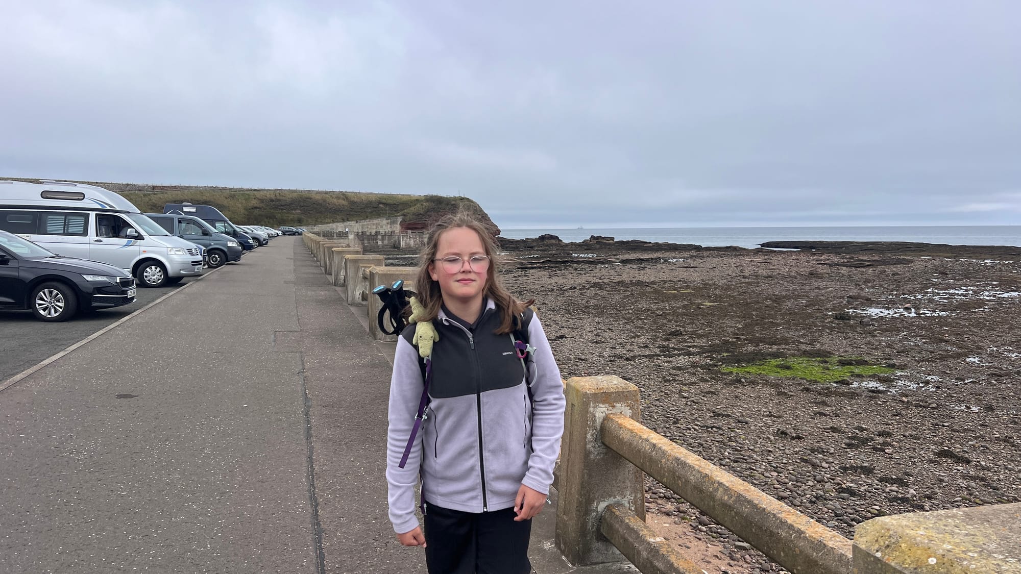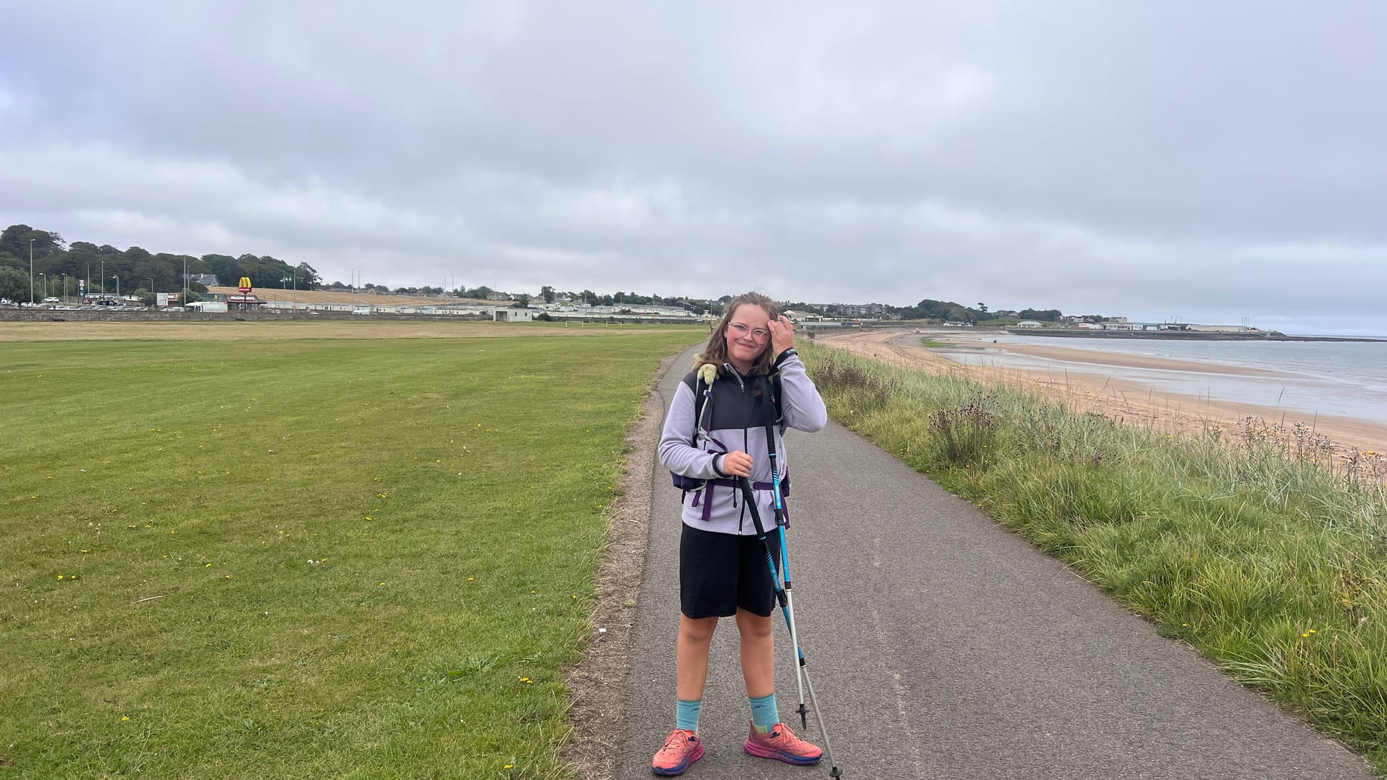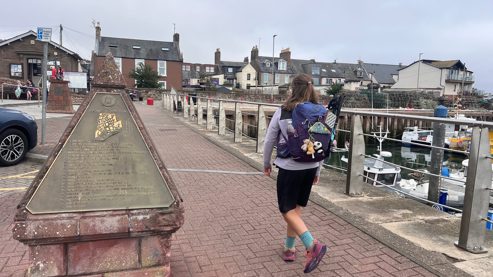 As we headed into Arbroath, walking along the beach, I told Eve we could try somewhere to buy her an ice cream. We had recently received some donations via Buy Me a Coffee, which gave her the opportunity for a sweet treat. Thank you!