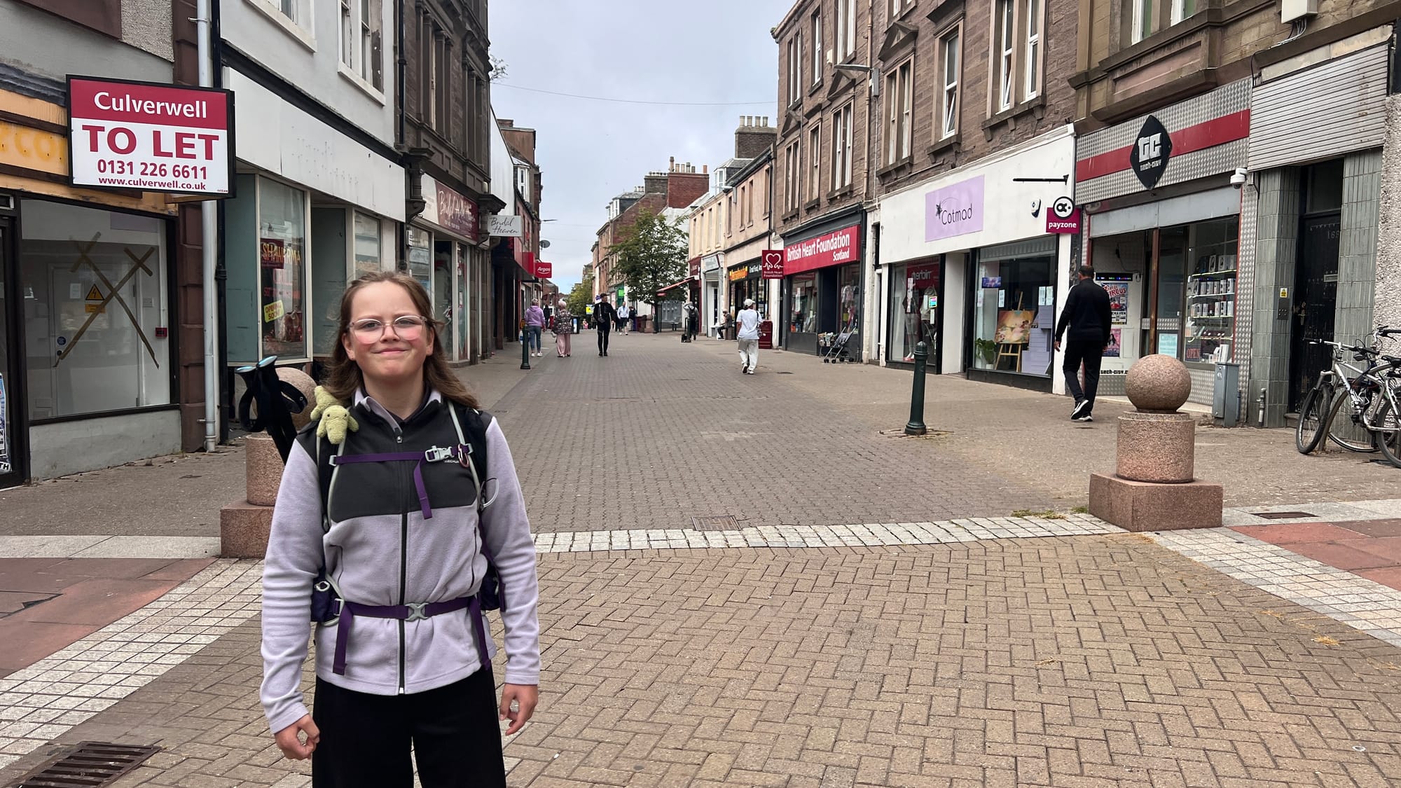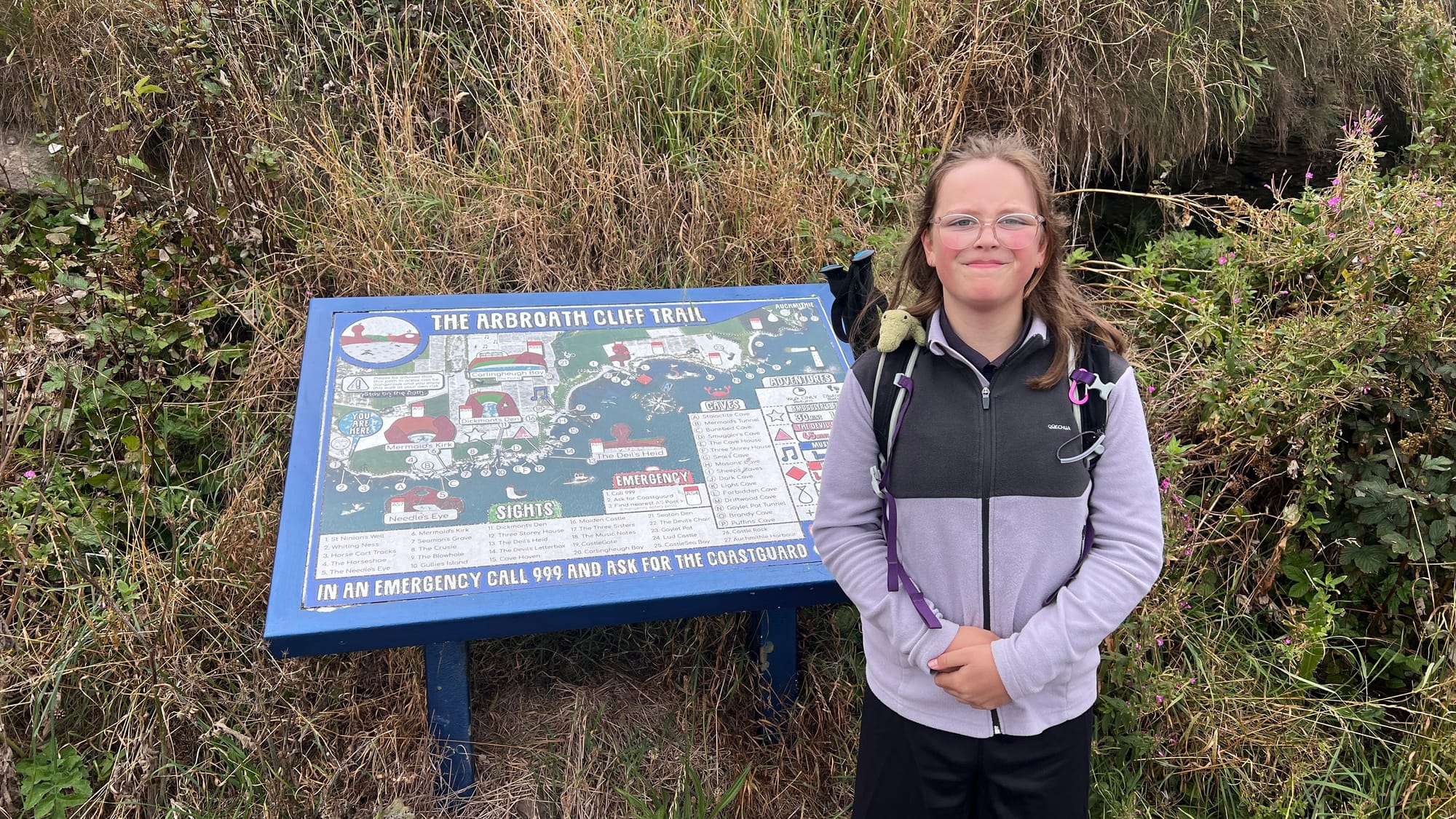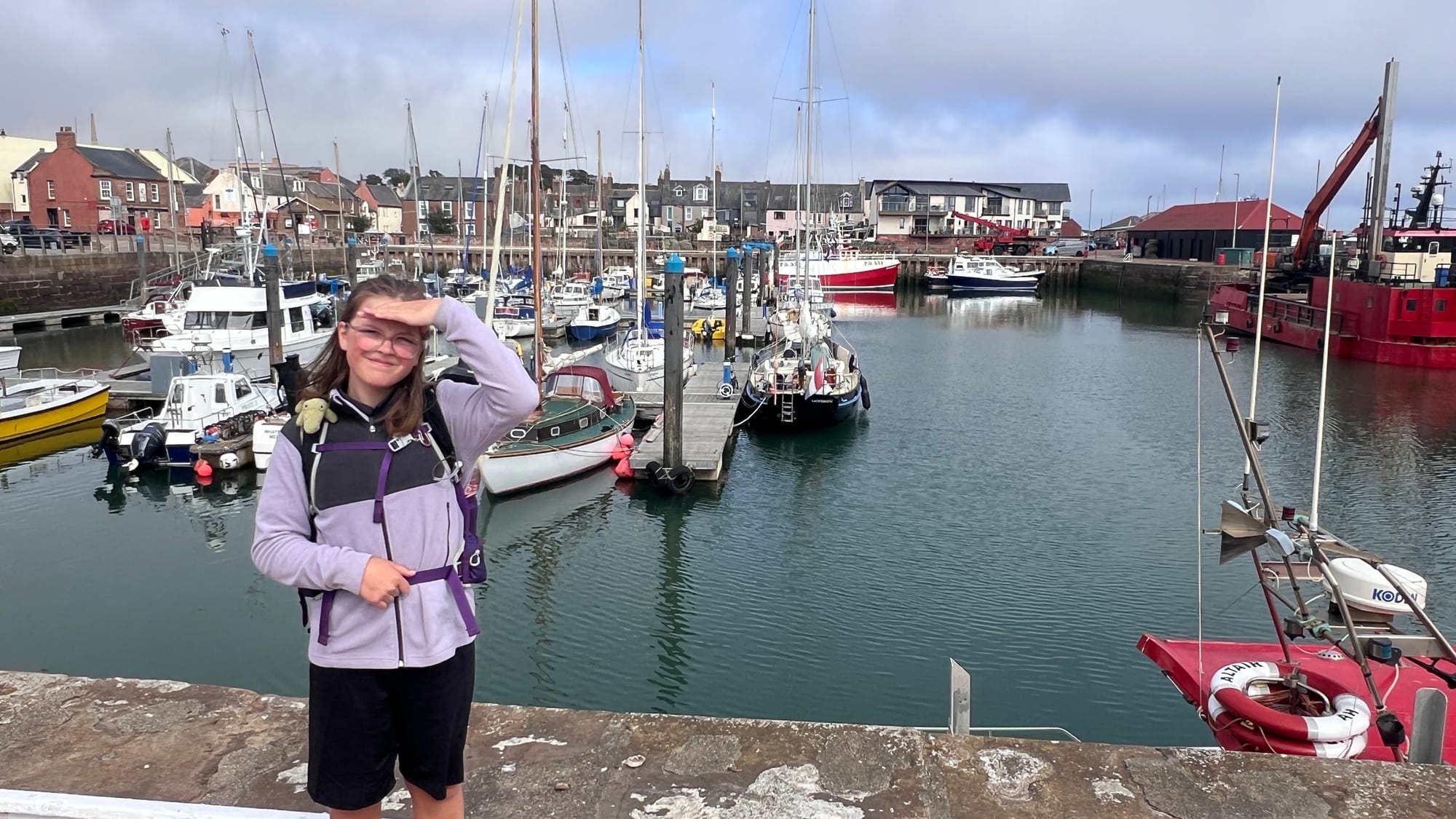 As we headed into Arbroath, walking along the beach, I told Eve we could try somewhere to buy her an ice cream. We had recently received some donations via Buy Me a Coffee, which gave her the opportunity for a sweet treat. Thank you!