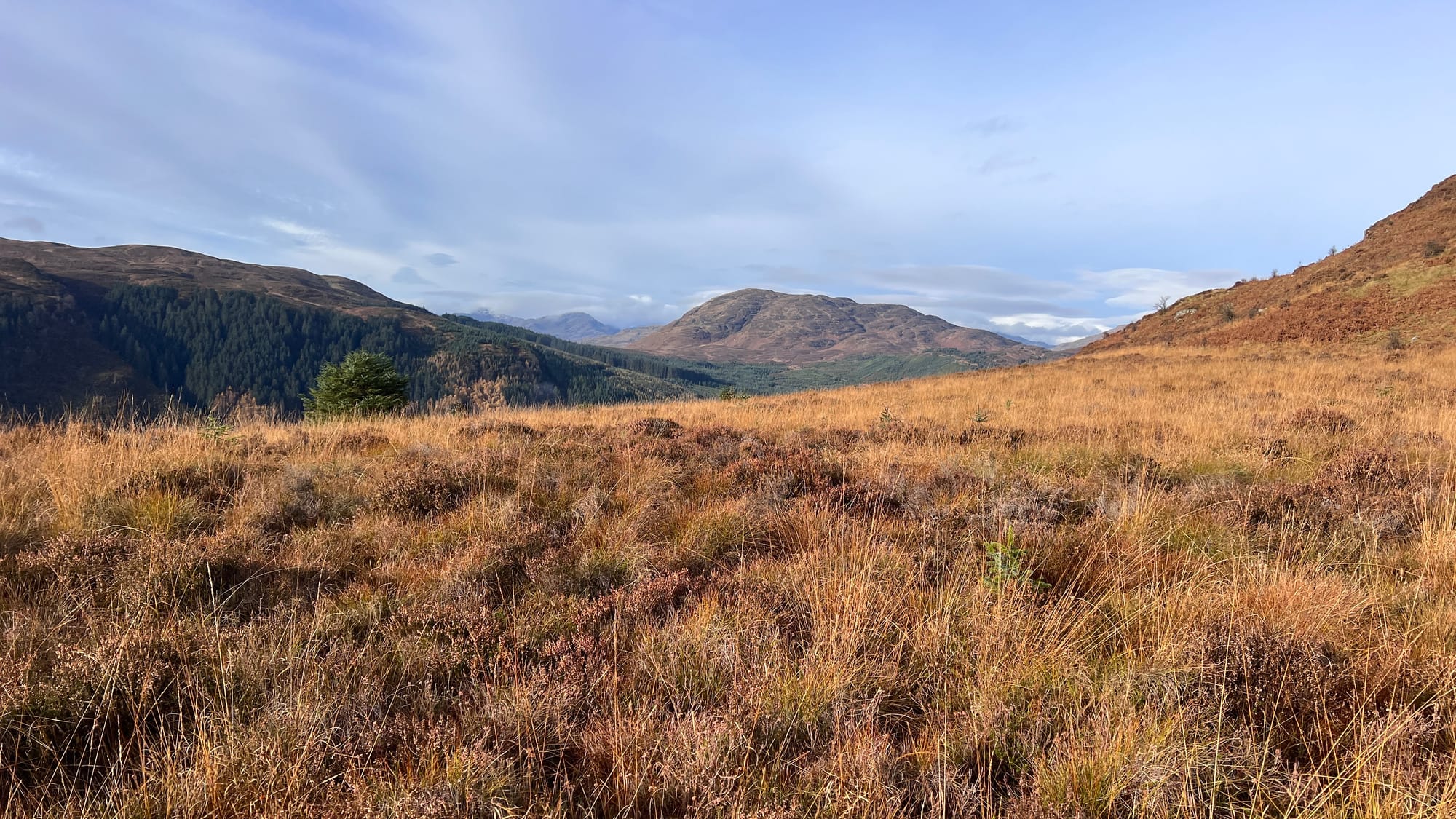 The grass hid countless small burns and various holes that my legs would disappear into. How I didn't end up with a boot full of ice-cold water, I donât know! This was also the hardest section of the day, but it was also largely self-inflicted. Spending a few minutes looking at the map and the terrain, I could have avoided some of the long grass and the holes it hid!