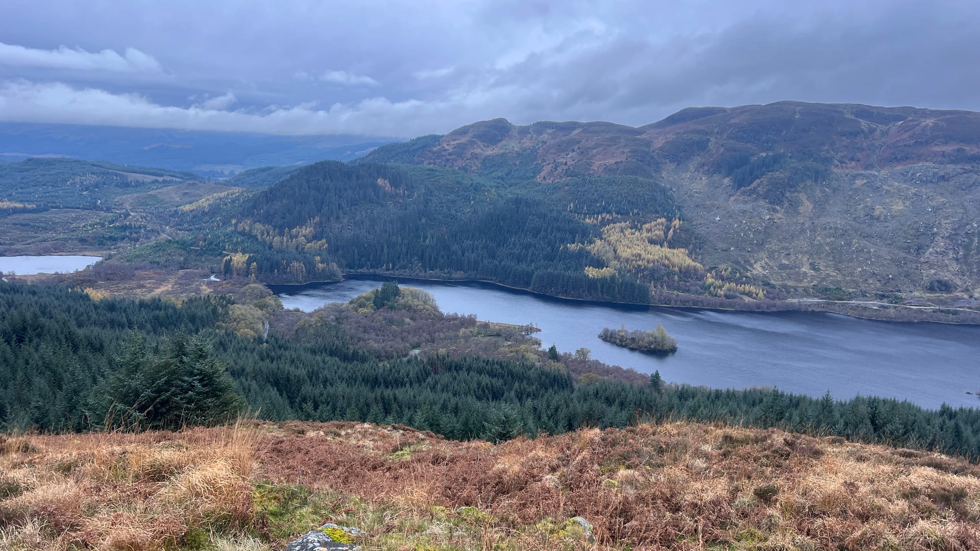 The mountain terrain and looking towards Loch Katrine and the Bealach na Craoibhe