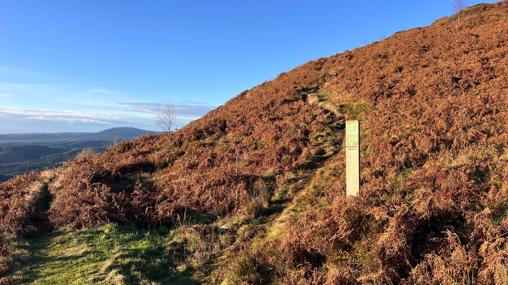 The first half is on a well-made forest and hill path, while the second half takes you along a rough, open, and undulating mountain trail that can become very boggy in places.