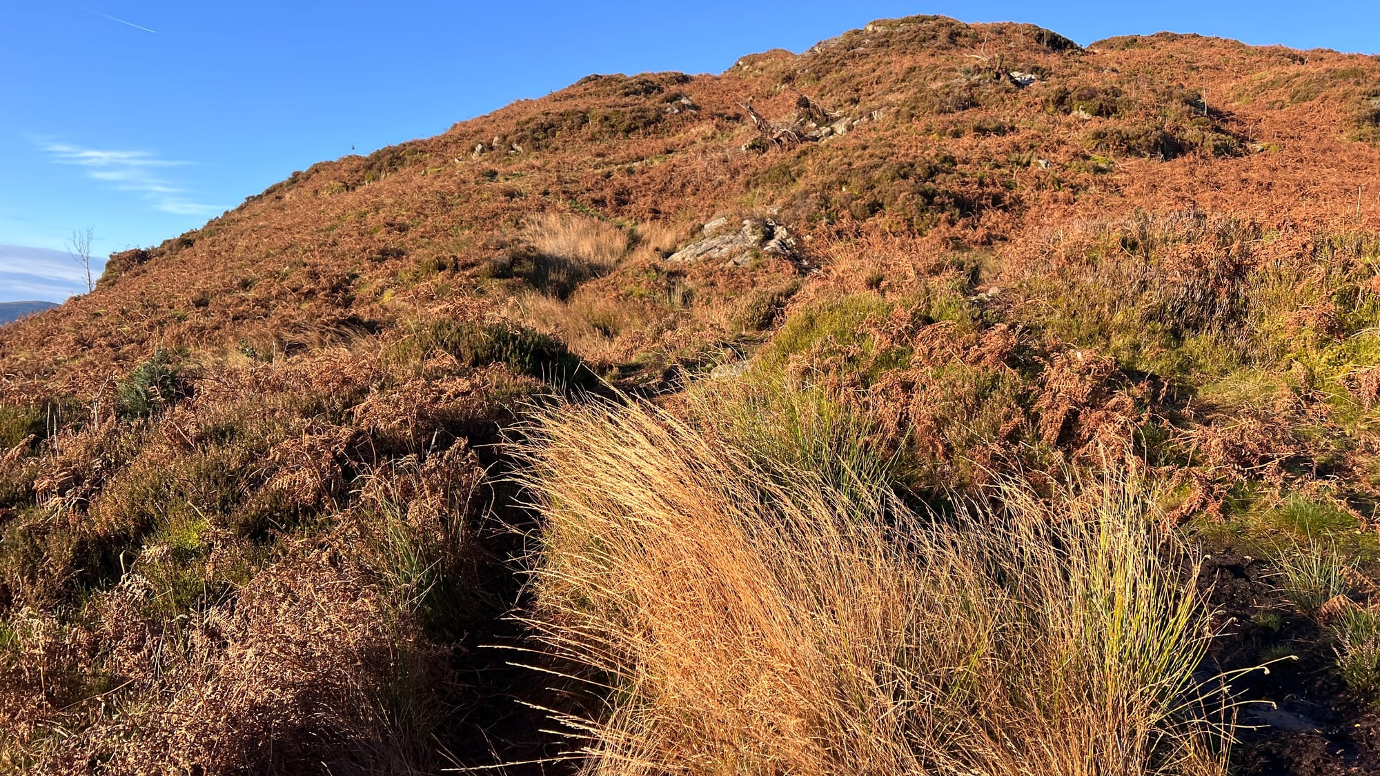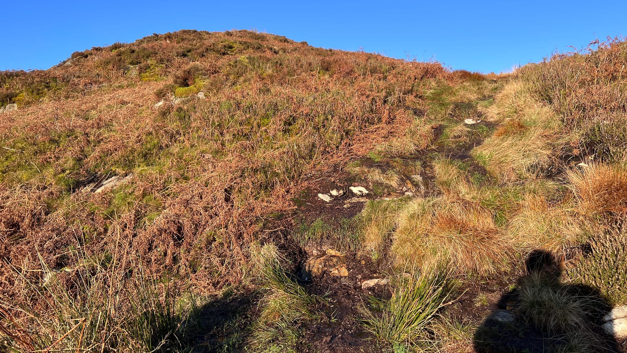 From the bench to the summit the terrain gets rough and boggy