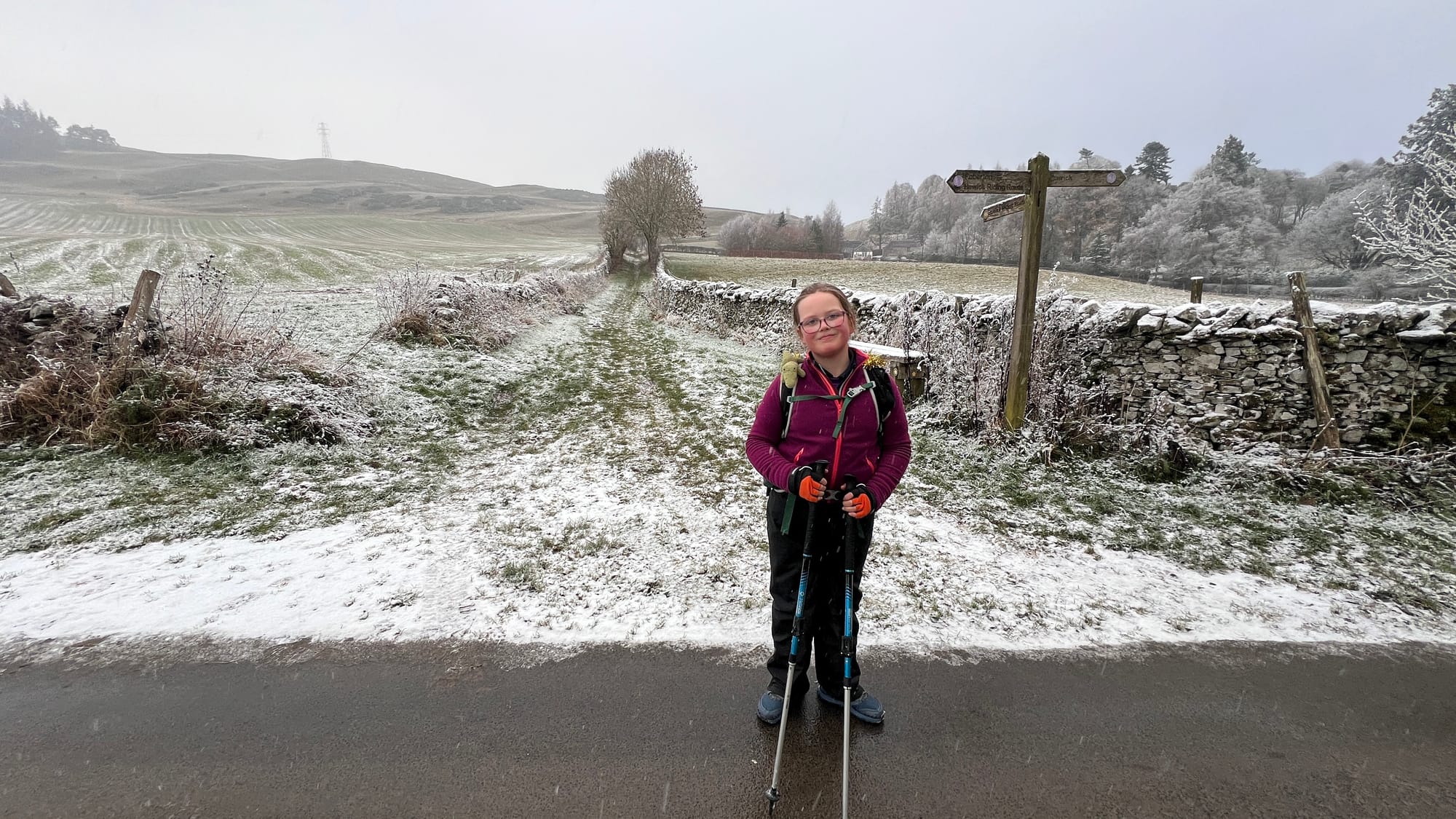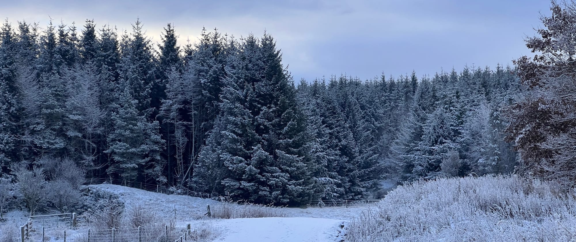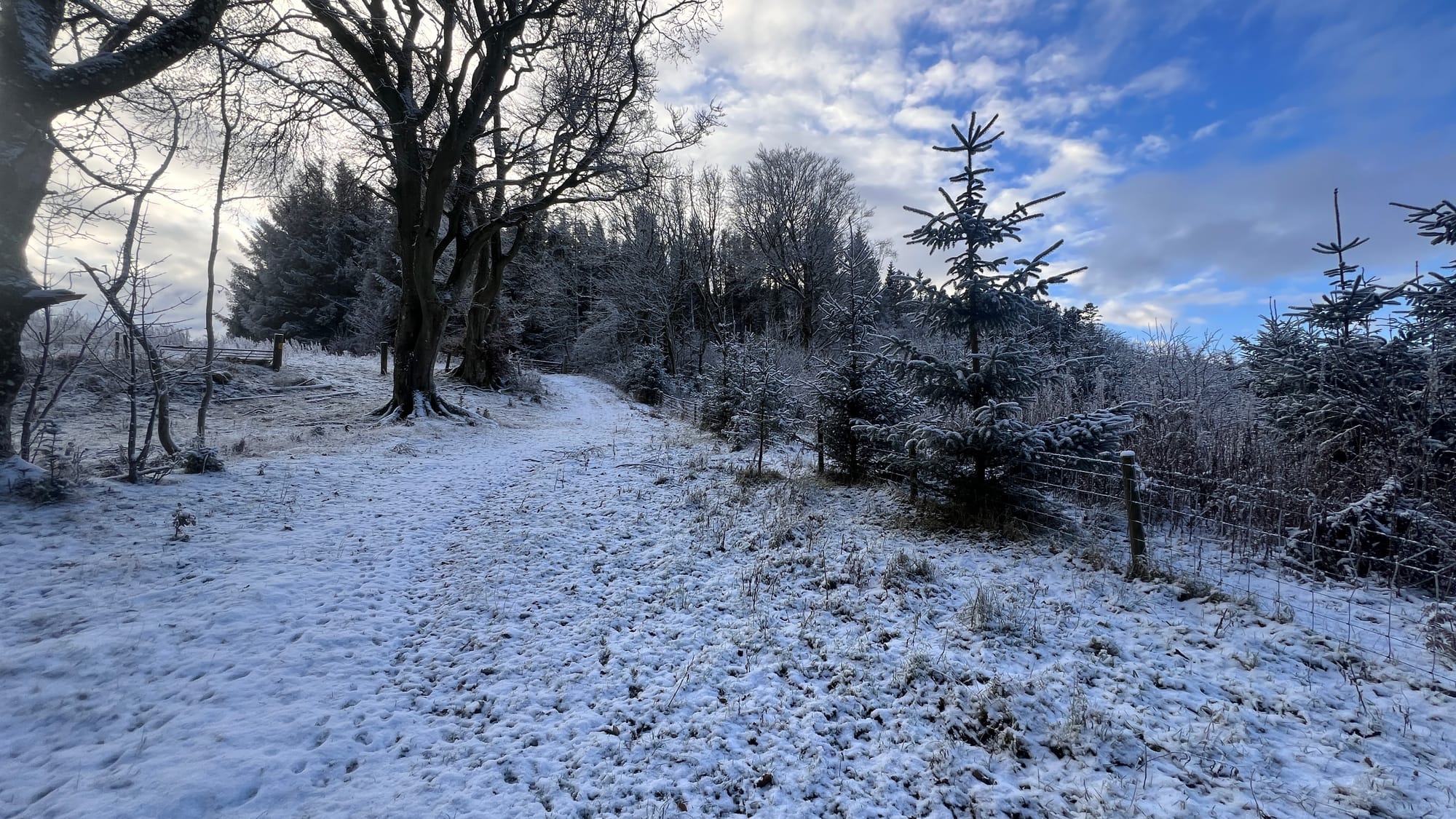The snow was falling outside as we woke snuggled up in our warm bed. Eve and I felt privileged to be ending the Cross Borders Drove Road on such a beautiful winter's day!
