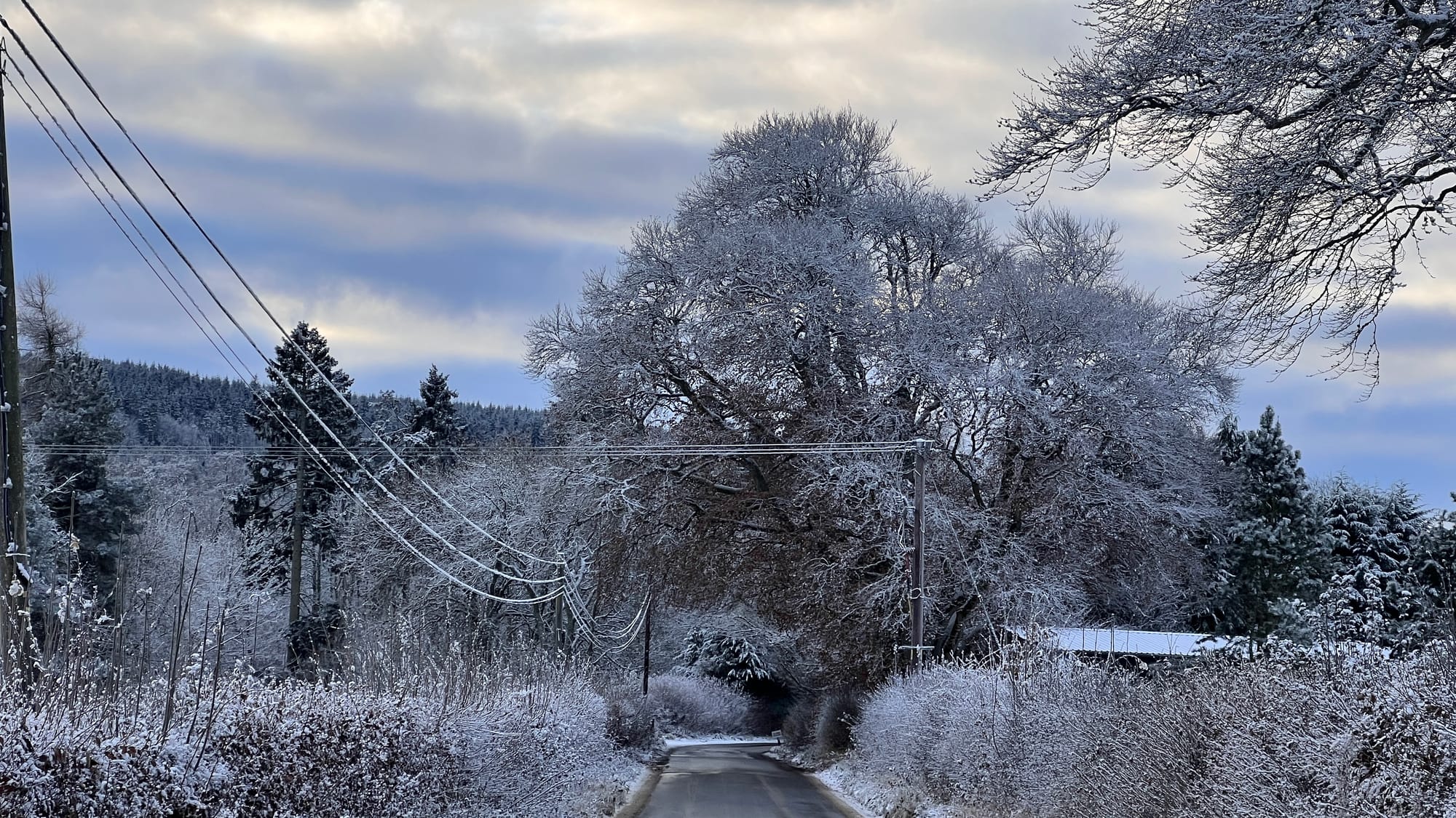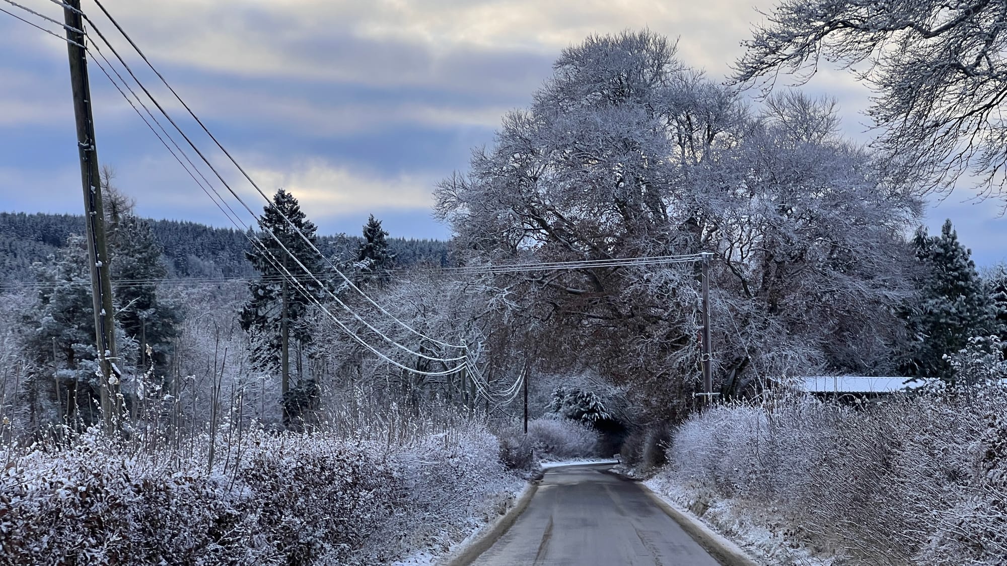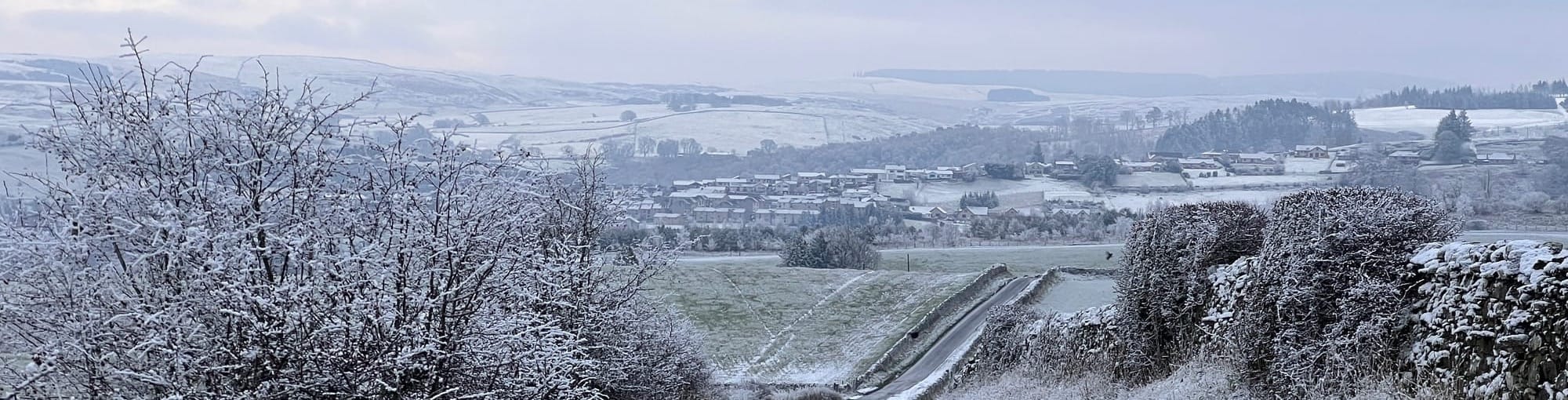 The snow was falling outside as we woke snuggled up in our warm bed. Eve and I felt privileged to be ending the Cross Borders Drove Road on such a beautiful winter's day!