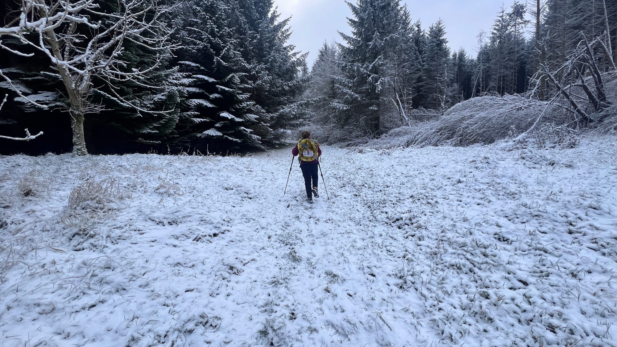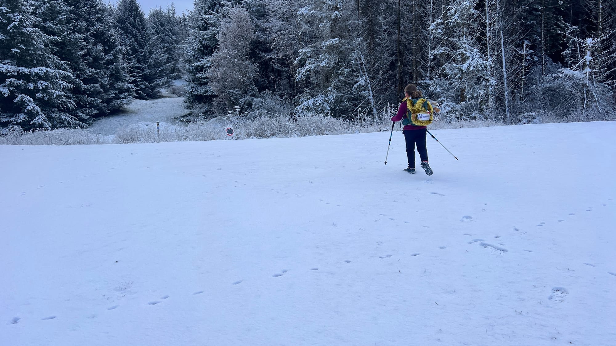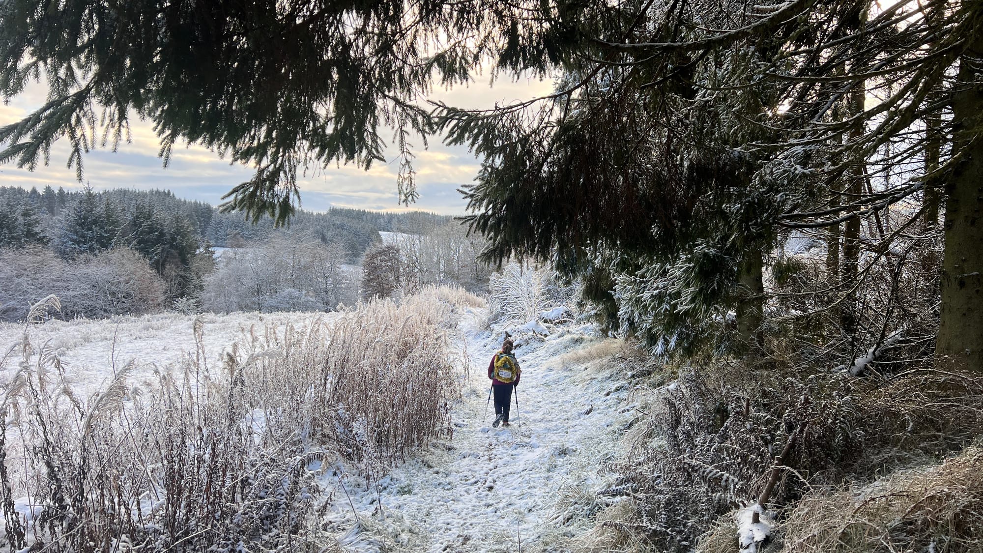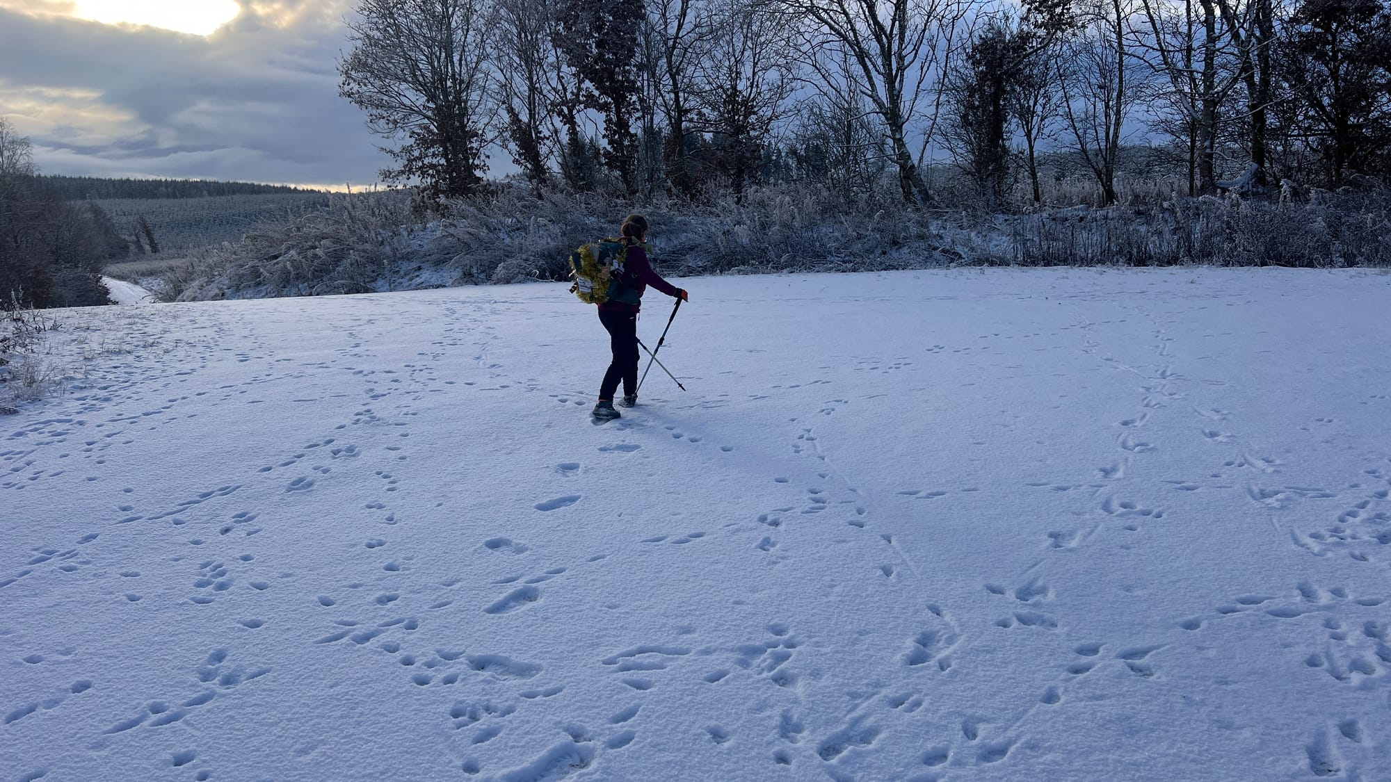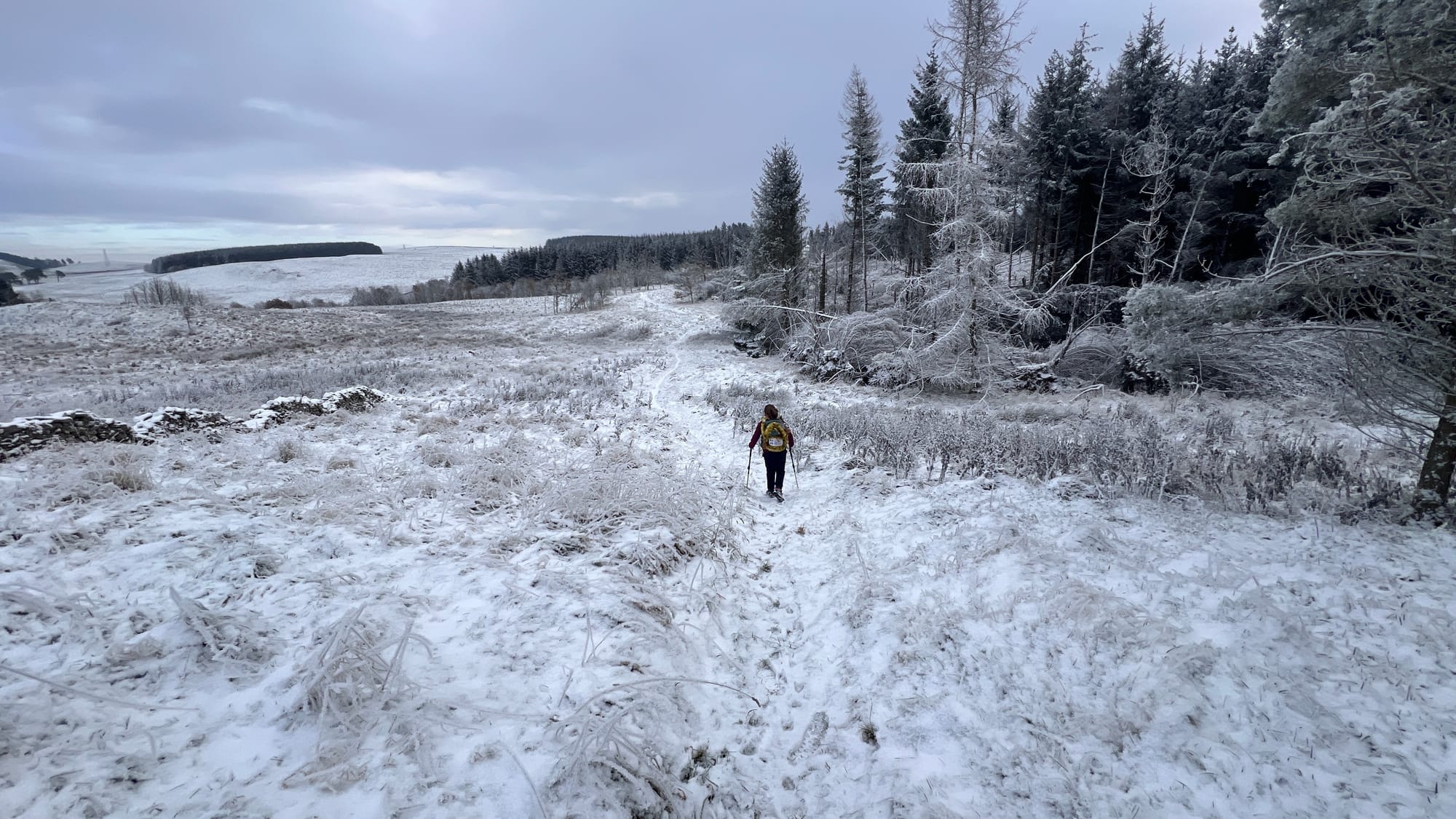 Walking through the woodland, over Ashkirk hill was a particular highlight of the day. The trail had not been walked by anybody since the snow first settled. The snow was thick and crisp.