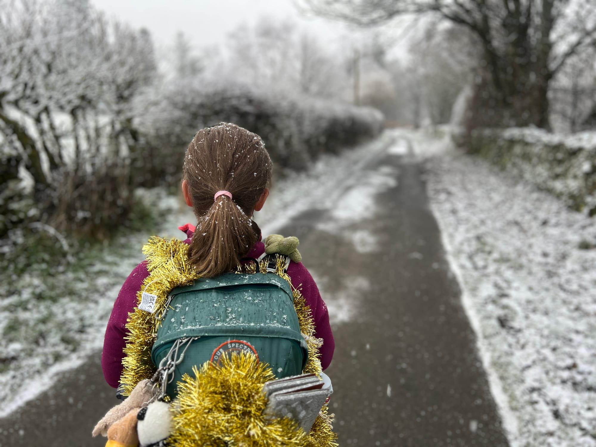 Eve’s Christmas advent activity today was to listen to festive songs. We listened to Christmas songs all day… I should tell you that I had downloaded these onto my iPhone the night before, but the truth is, I still had them from last year. We spent many long summer days hiking in shorts and t-shirts listening to and singing along to songs such as Wham’s Last Christmas. Today it felt different and was the perfect accompaniment to the pristine white that surrounded us.