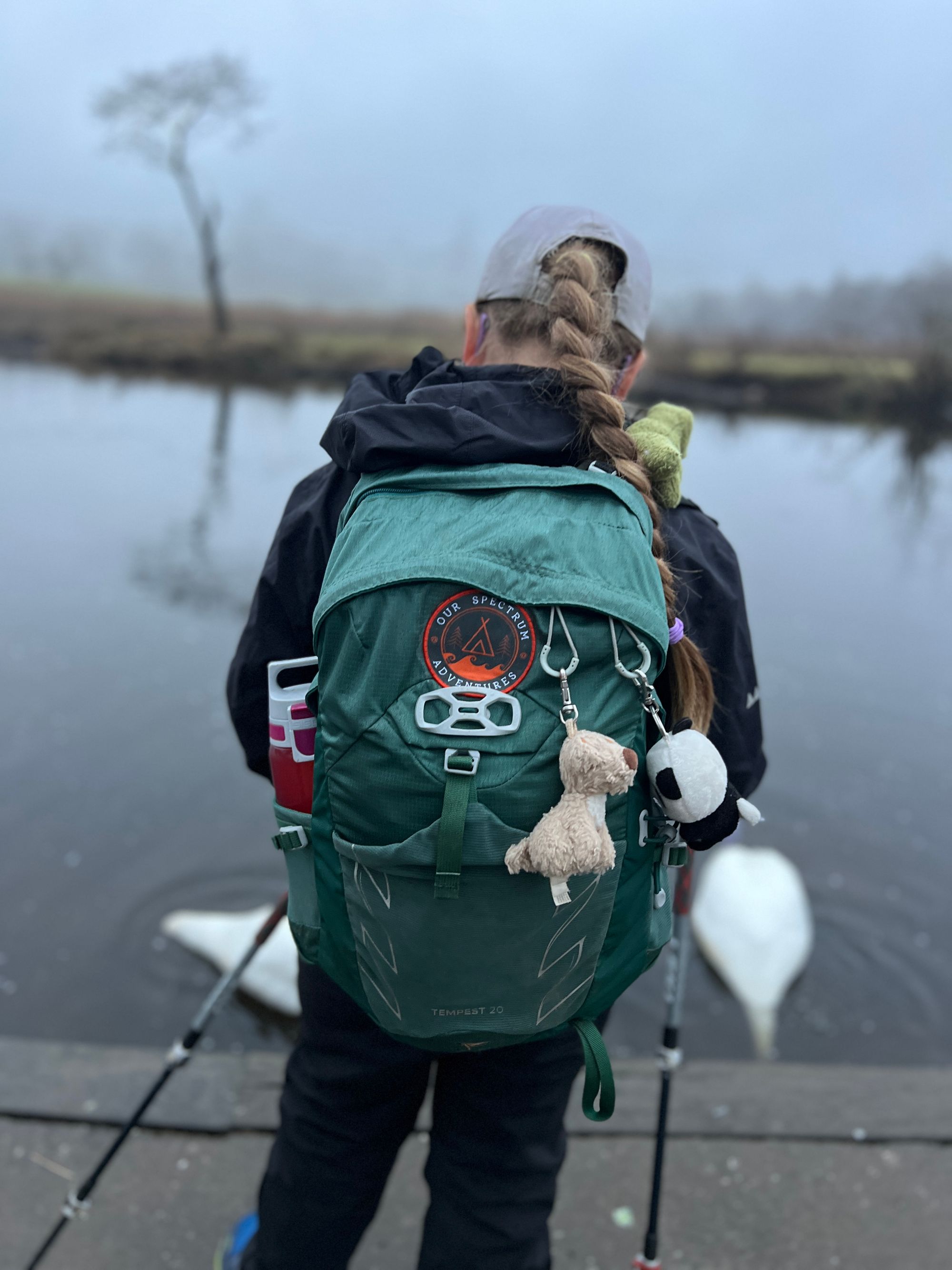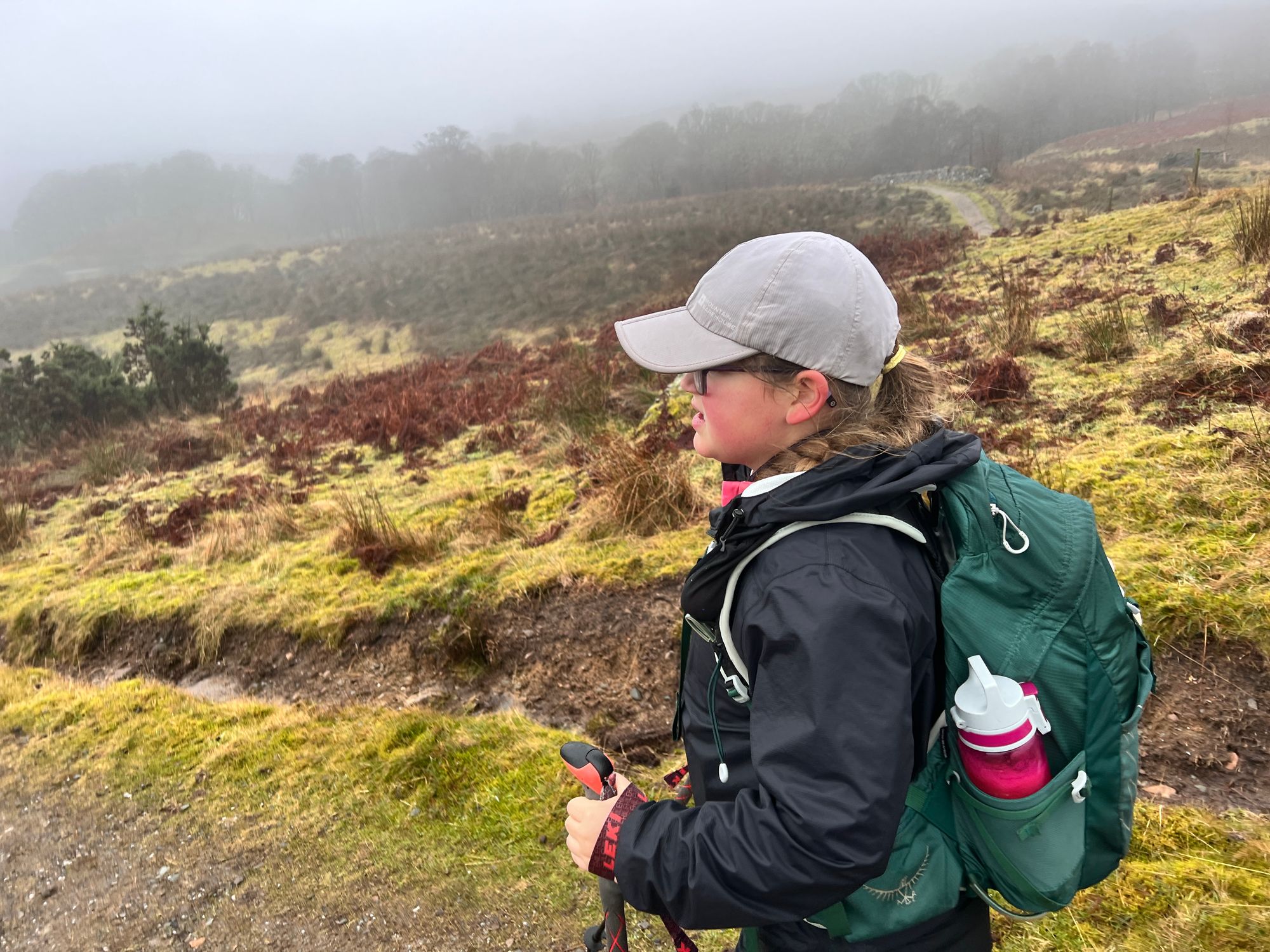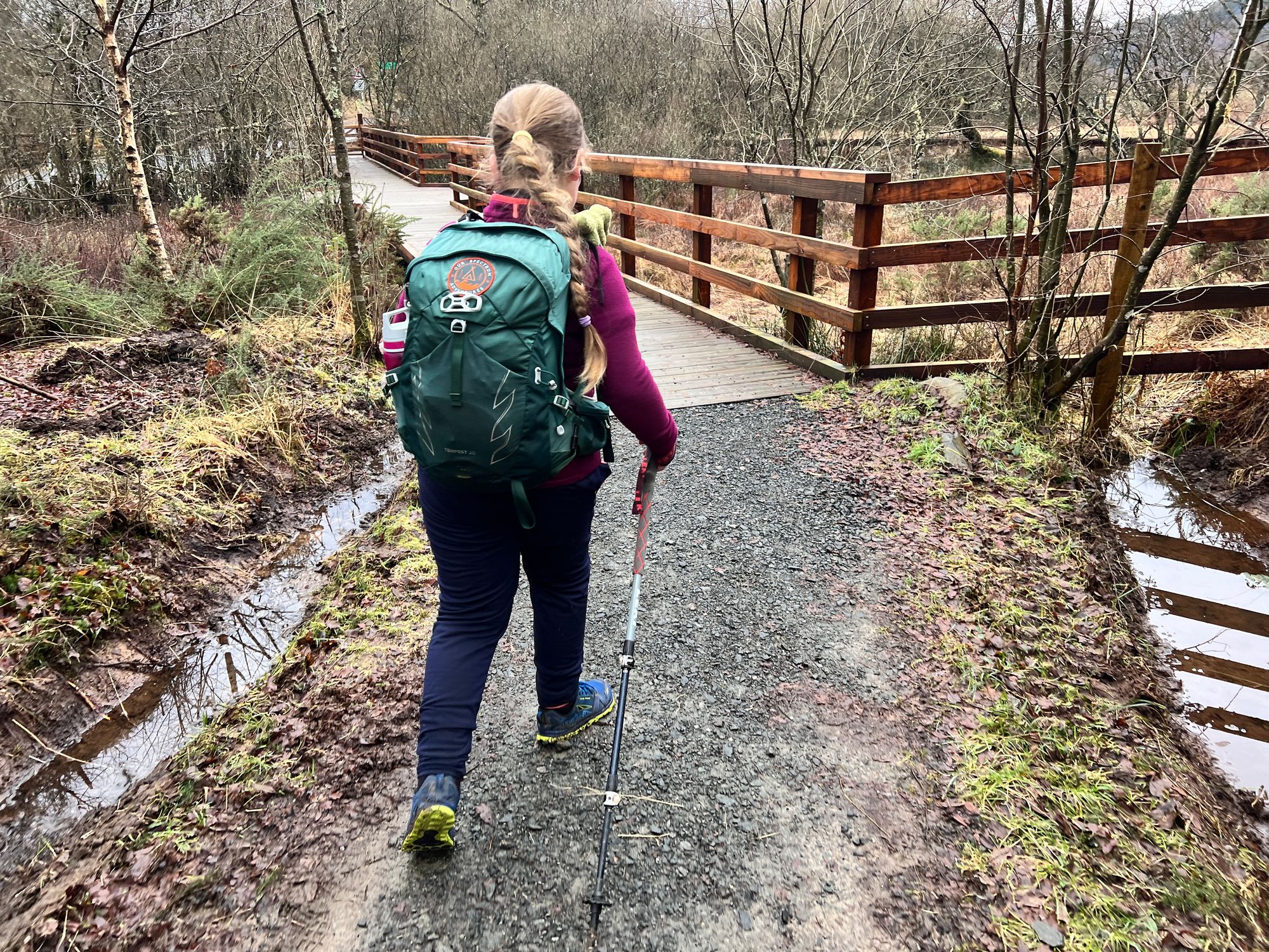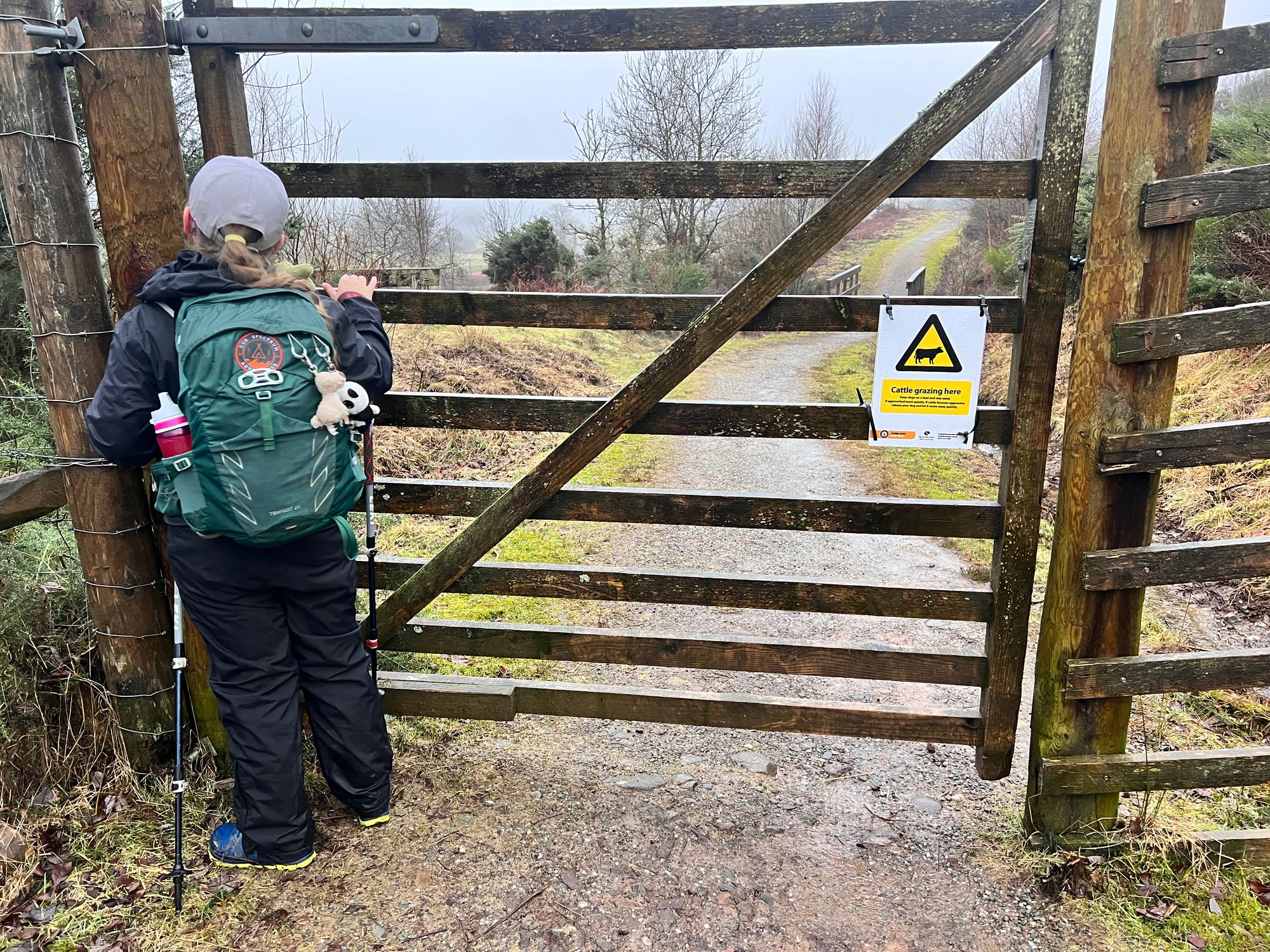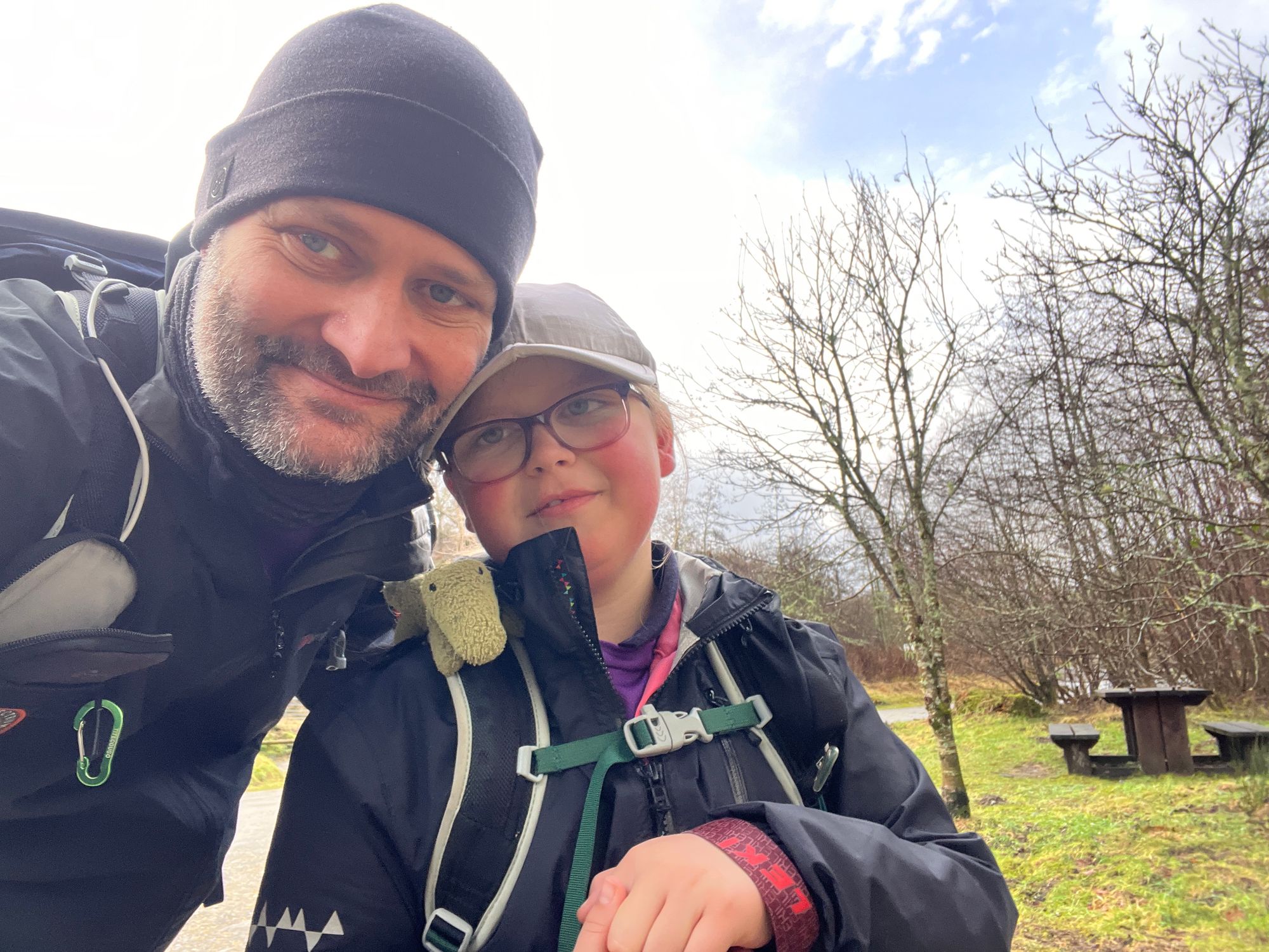 I was expecting to have to de-ice the windscreen, but it was only wet. It didn't feel as cold as I had expected. It was raining but not too heavily. Sarah was busy putting Eve's hair in a ponytail when I walked back into the house.Putting our backpacks in the car boot felt strangely familiar and comforting. We drove through the fog and the rain. The rain wasn't too bad but was enough to get you wet to the skin within minutes. The sort of rain that lingers in the air, wetting you from the bottom up. Wearing waterproofs was going to be essential, at least to start off with.