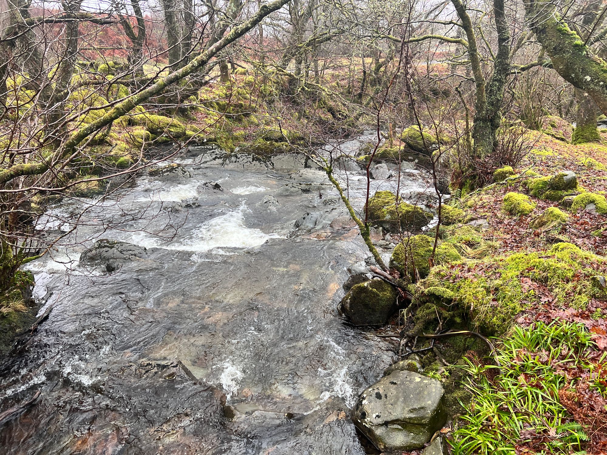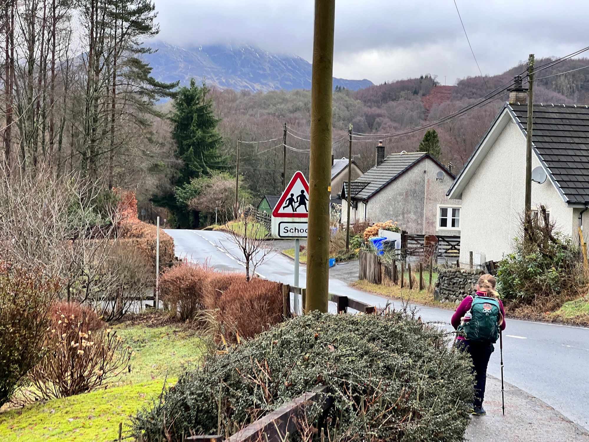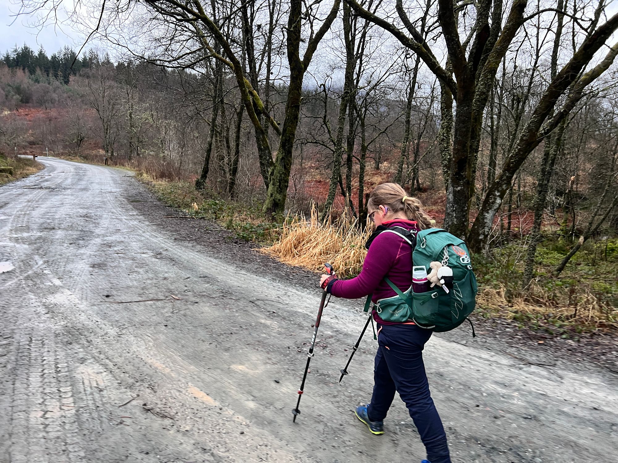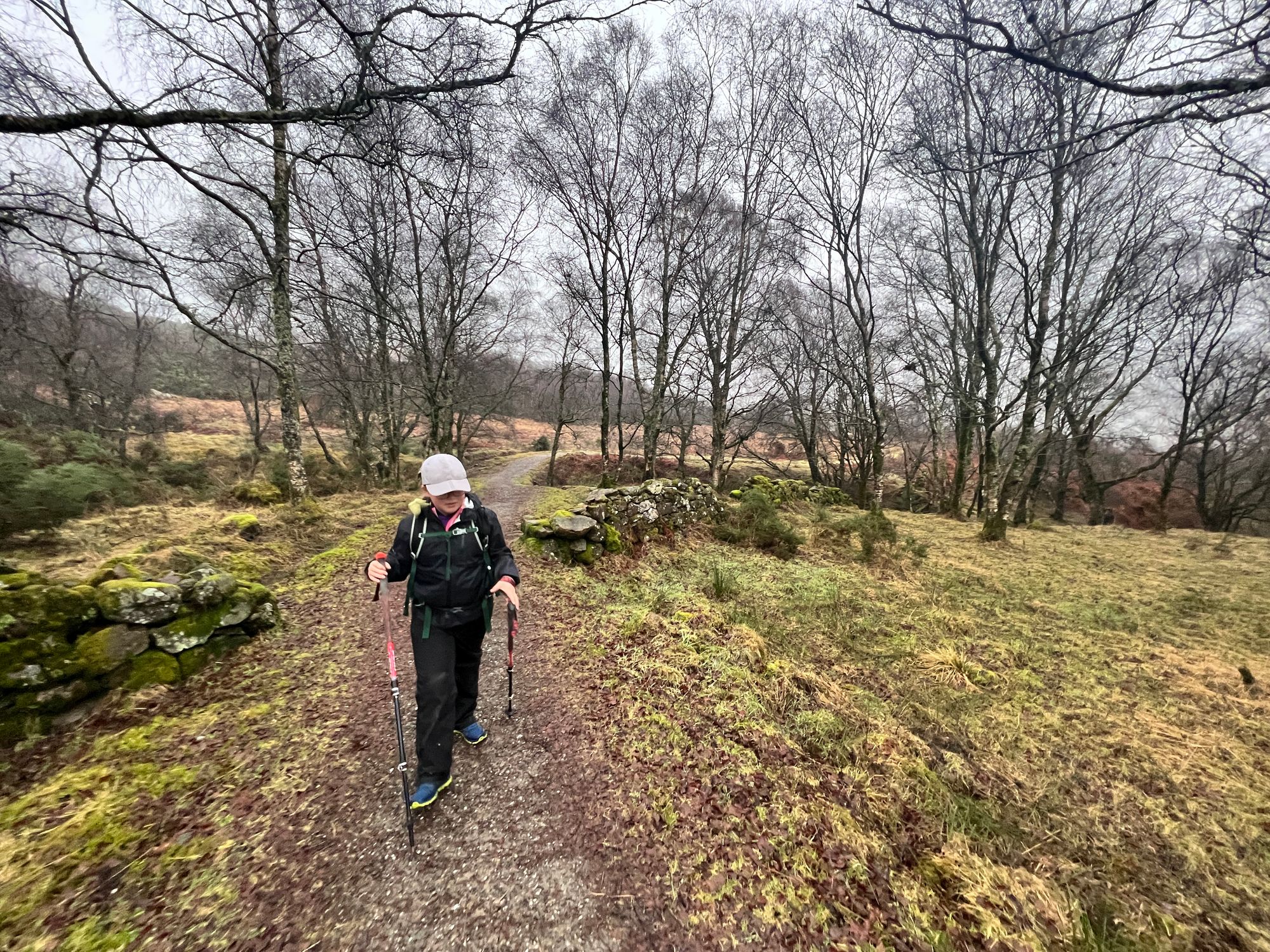 The path follows the road for miles, passing Loch Venachar. The views are stunning but were obscured by the fog.