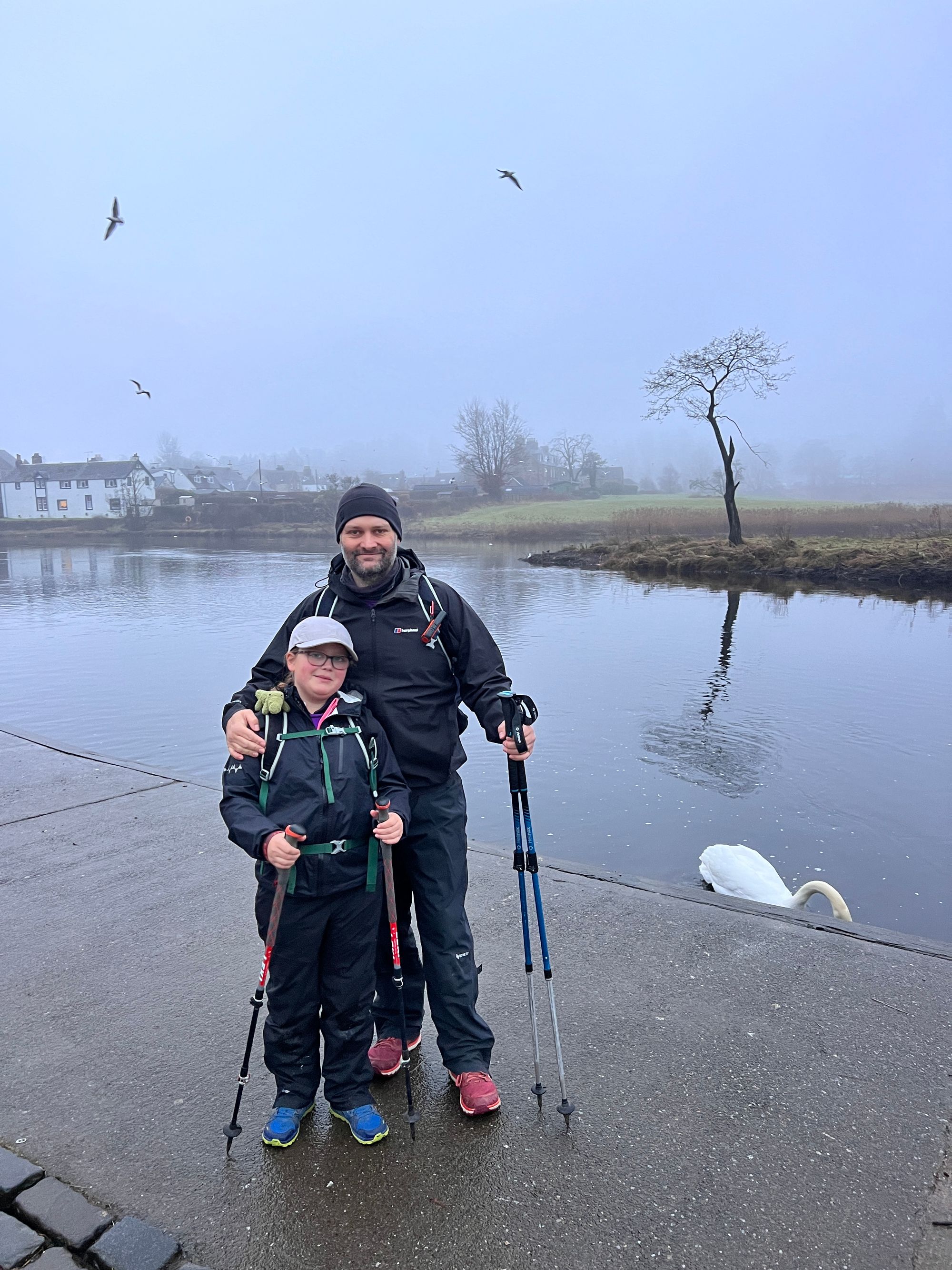 We arrived at the Meadows car park and it was virtually deserted, except for a few ducks and a couple of swans. Eve wanted to go and see the swans immediately, but we insisted she got her waterproofs on first. Sarah got Eve ready whilst I put my Garmin inReach on and put my waterproof jacket on.