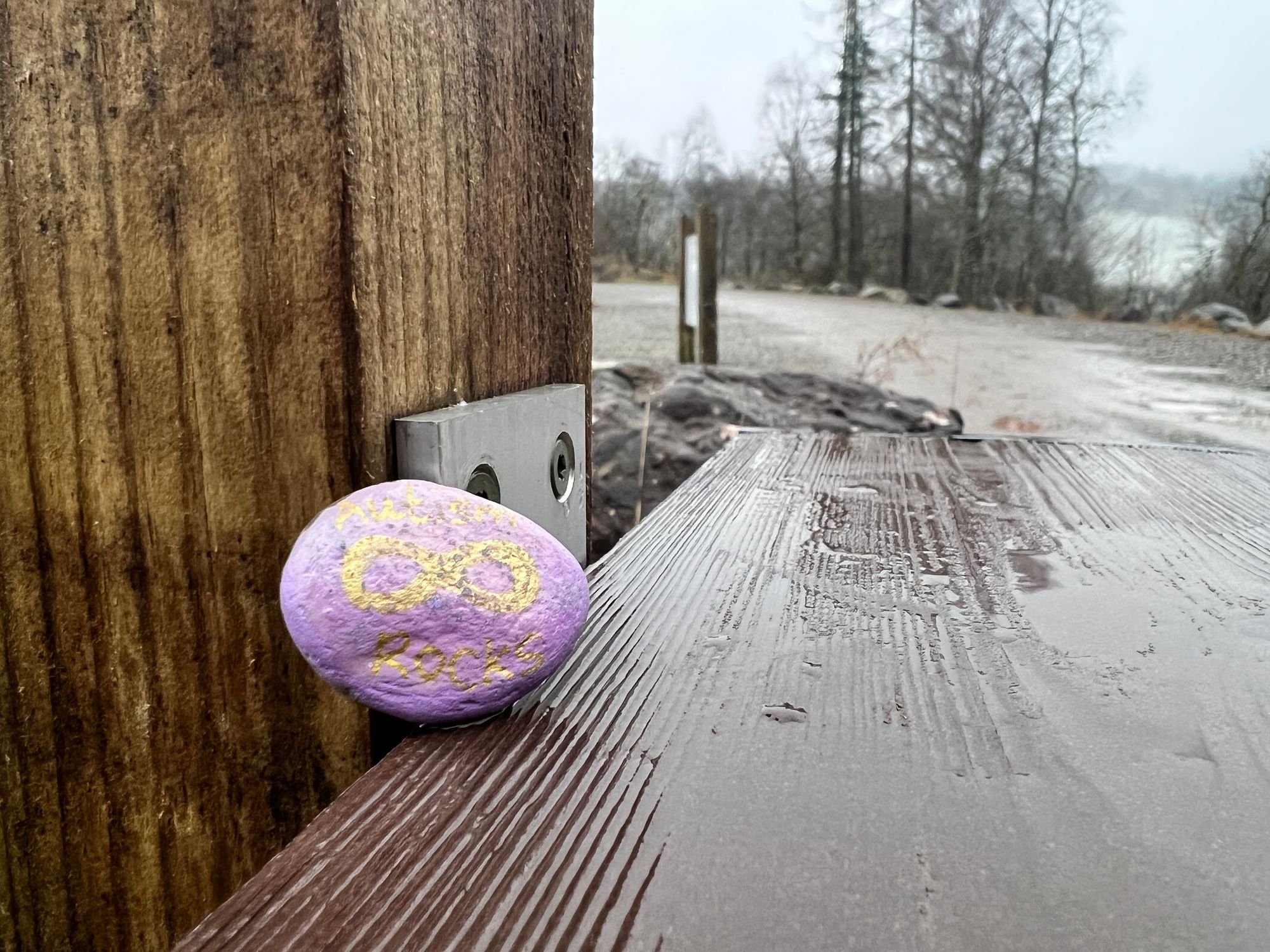 Whilst in the car park we placed the first of Eve's Autism Awareness Rocks.