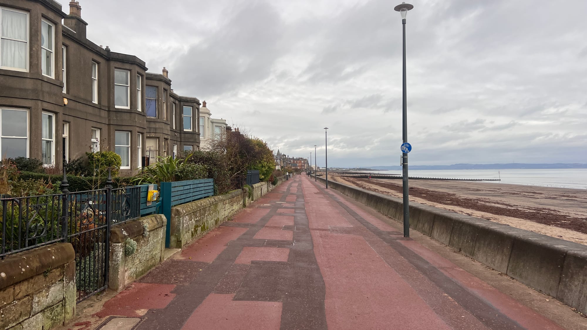 Getting onto Silverknowes Esplanade felt good—as if we were starting to leave Edinburgh’s urban sprawl behind. The esplanade was quiet, with only a few people around. We passed a few cyclists and a mother and baby heading into the buildings opposite. Walking started to feel pleasant, with a slightly more relaxed attitude. We were alone for the first time today.