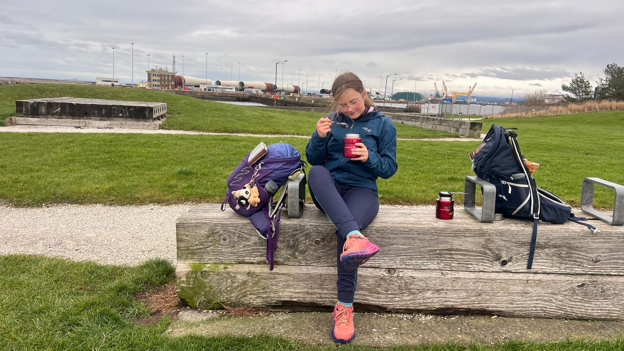 Reaching Leith West Breakwater Lighthouse, it was approaching 1 pm and we were hungry. Sitting on a wooden plank, made into a bench, we ate our soup from our new Thermos Food Flasks. We both had Scotch Broth.
