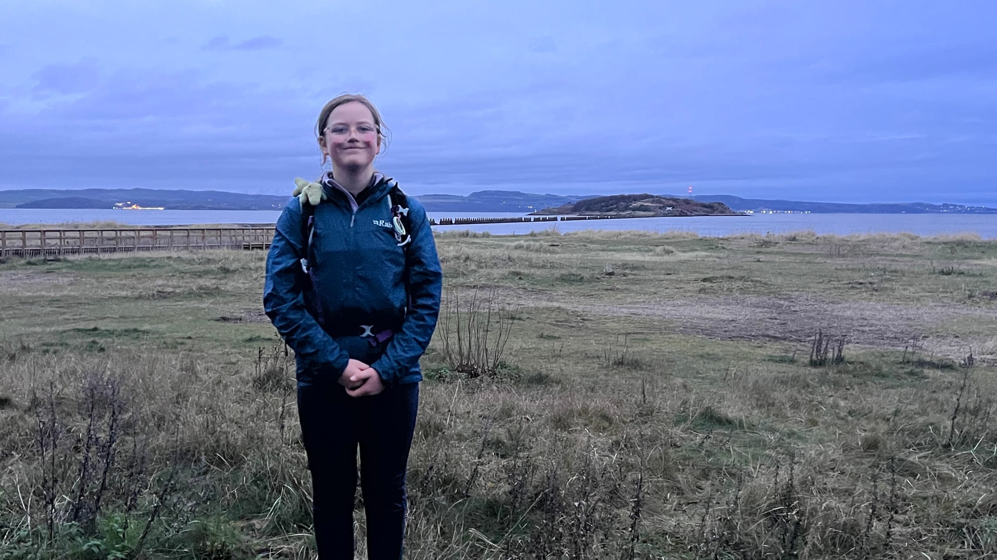 Eve walked most of the way along the narrow wall next to the coast, and I stayed on the path. The trees to our left looked warm and inviting, and if we were camping, this is where I would have gone—hiding behind one of the bushes, out of sight. Across the Firth, we watched lights being switched on the opposite side and on the various boats and platforms moored in the water. I really like this time of day, when day shifts to night. The twilight is magical and mysterious—I never tire of it. Eve was transfixed by the lights twinkling in the water’s reflection. We were both getting tired.