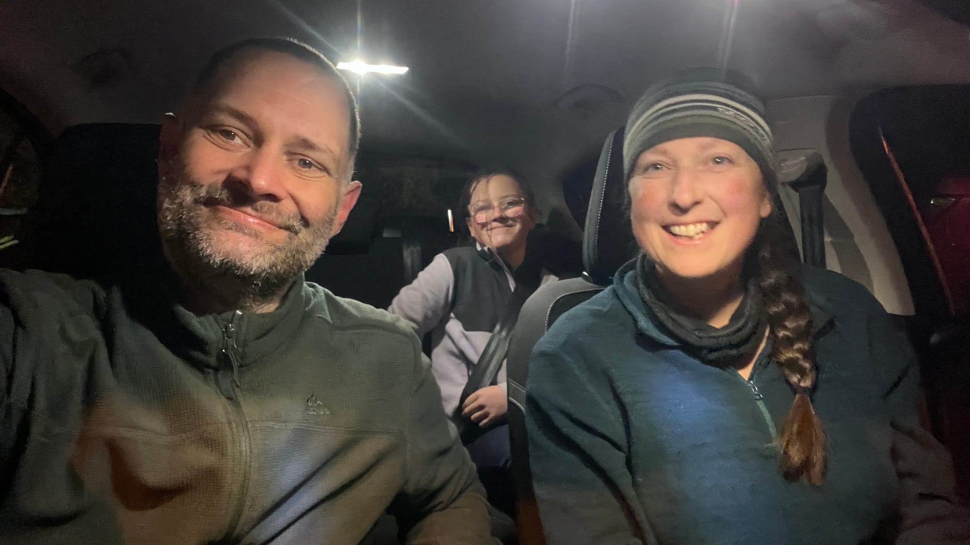 We passed a large old building advertising coffee and ice cream. Eve got very excited hoping to get ice cream, but the shop was closed. We walked in the dark listening to the river beside us, eventually reaching the car park, where we sheltered under a canopy, where bins were stored—not the nicest way to end the day’s walk, but it served us well and we appreciated the shelter! It wasn’t long before Sarah arrived and we bundled ourselves into the car, with a pack of mince pies waiting that Sarah had bought for us! I had told sarah earlier that Eve had been craving mince pies!
