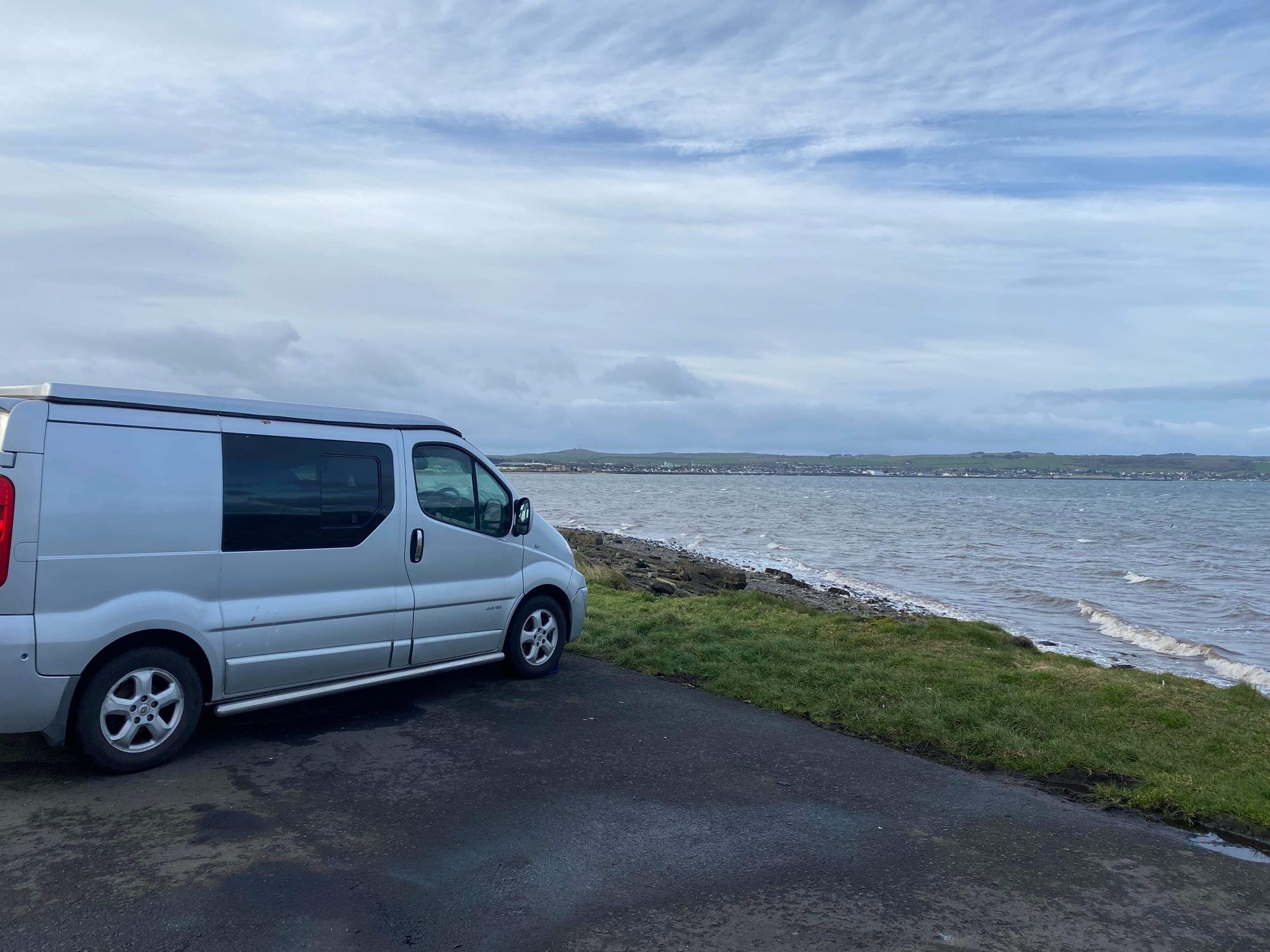 We wild camped in the van last night, watching the lights of Stranraer across the bay. We love nights like this, the darkness descending, lights flickering in the reflection on the sea and us three snuggling up for the night in our warm sleeping bags all together.