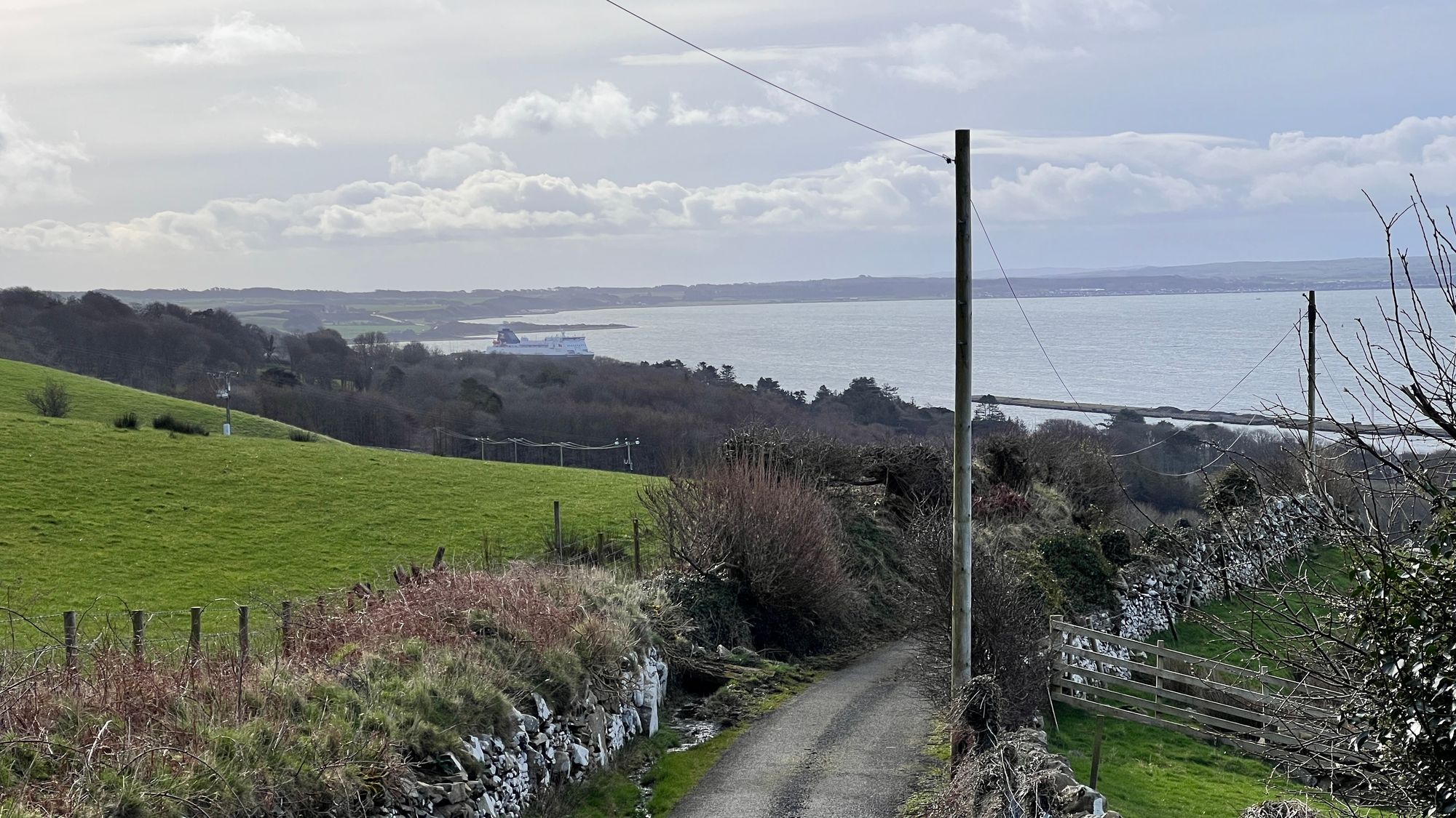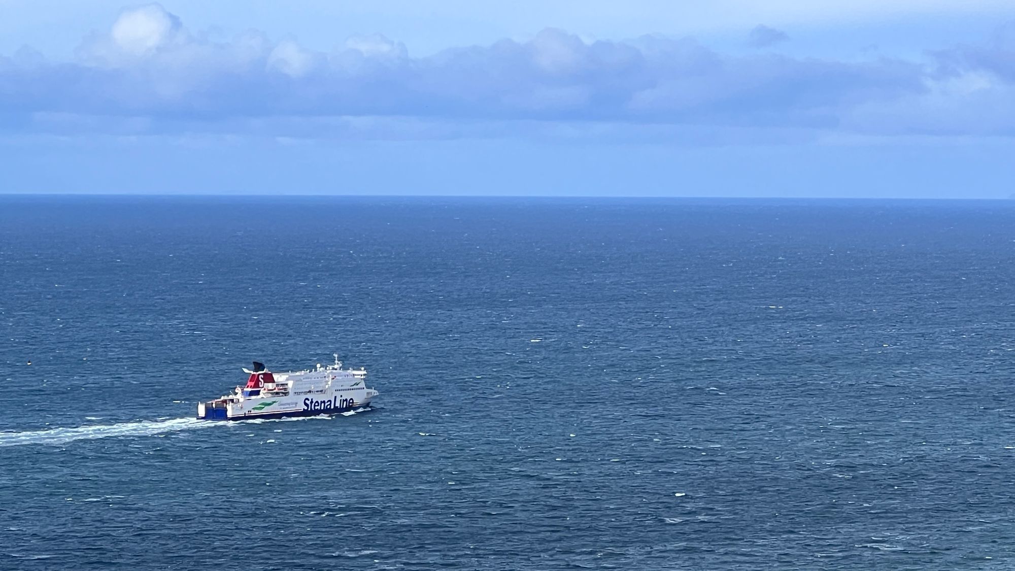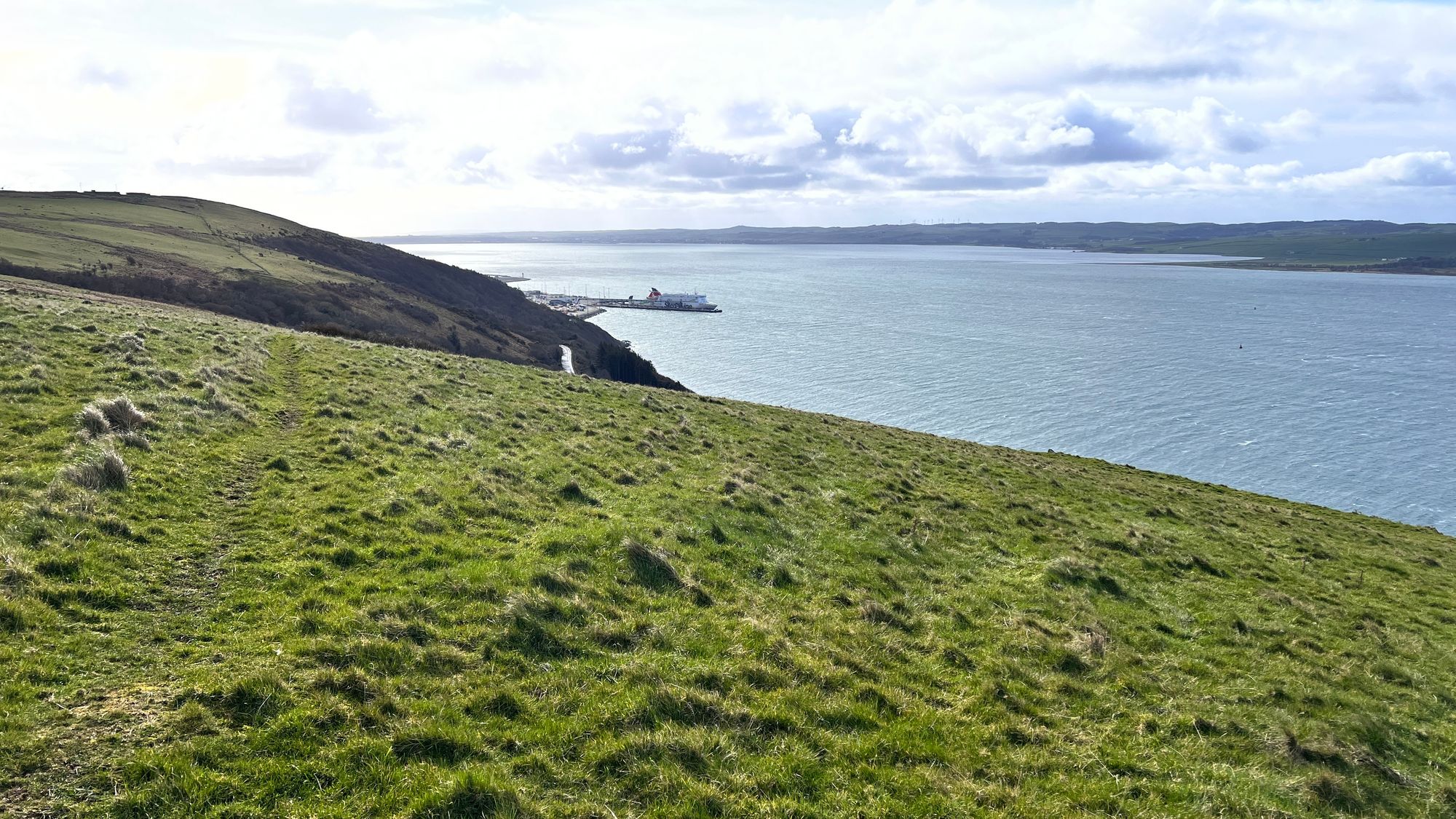 As we walked we watched a Stena Line ferry making it's way out of the port heading to Ireland. The ship looked absolutely huge up close but from the hillside it looked tiny. I don’t know if it was the wind or if it was going slow, but the it didn’t seem to be gaining much distance once it got out of Loch Ryan.