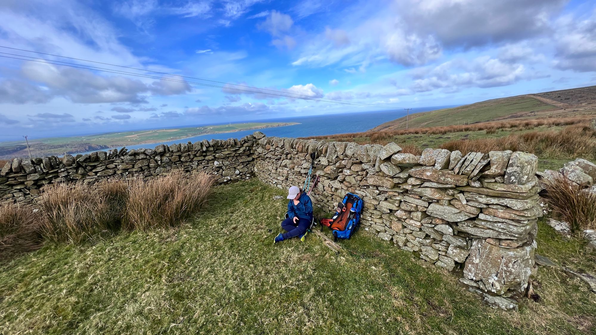 It wasn’t that far ahead we walked passed a sheep enclosure and used it to shelter from the wind to have a drink and a snack. Being out of the wind was really nice and we immediately felt warmer and could even hear each other talking!