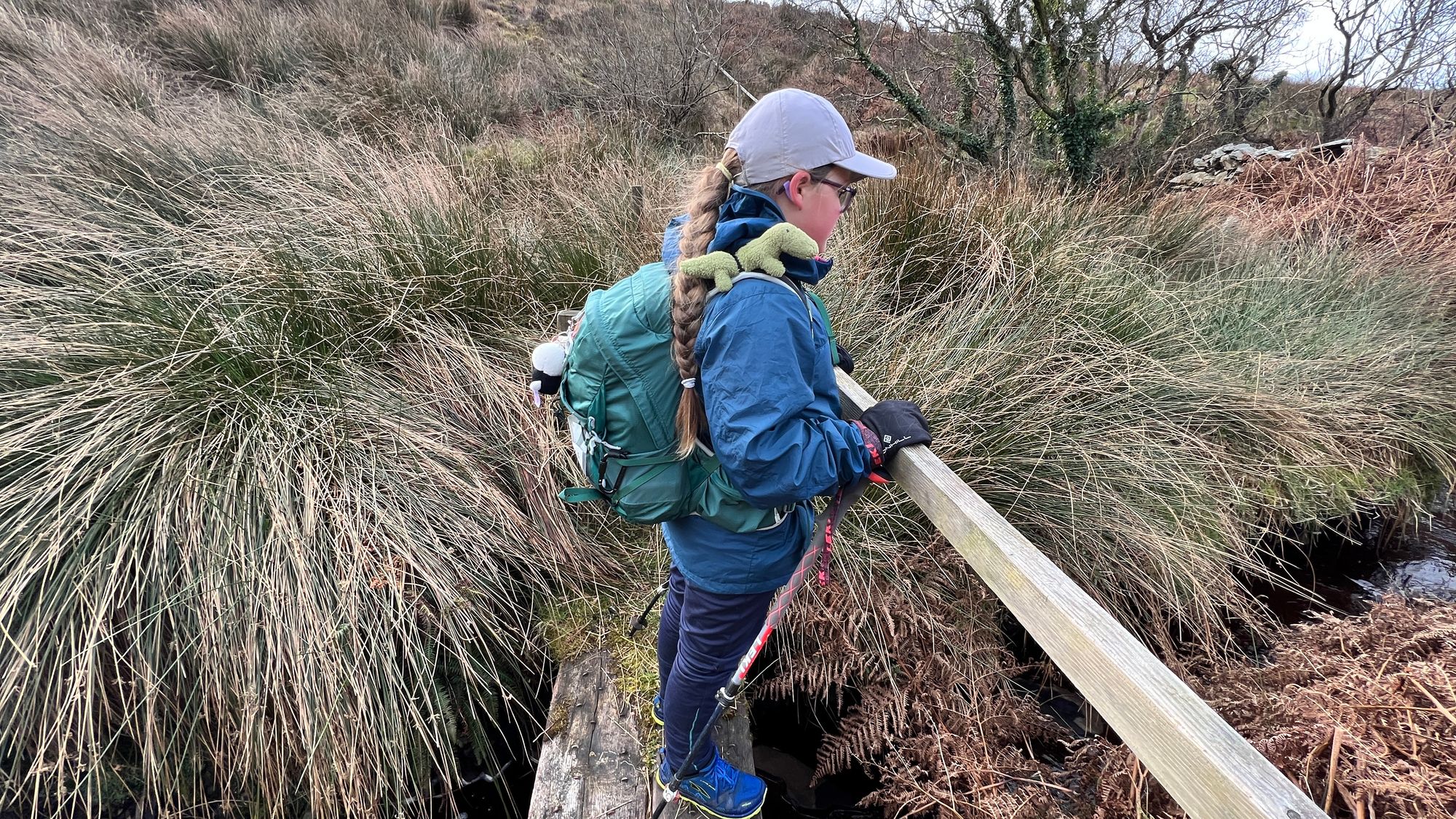 There were plenty of way markers on wooden posts to help us today and other features to ‘handrail’ but we found ourselves zig zagging all over the place to avoid the worst of the bogs. Eve was loving every second of it! We would take it turns to find a path through the bogs but on my turn Eve would make some excuse (I was going too slow was a common one) to go in front of me and lead the way.