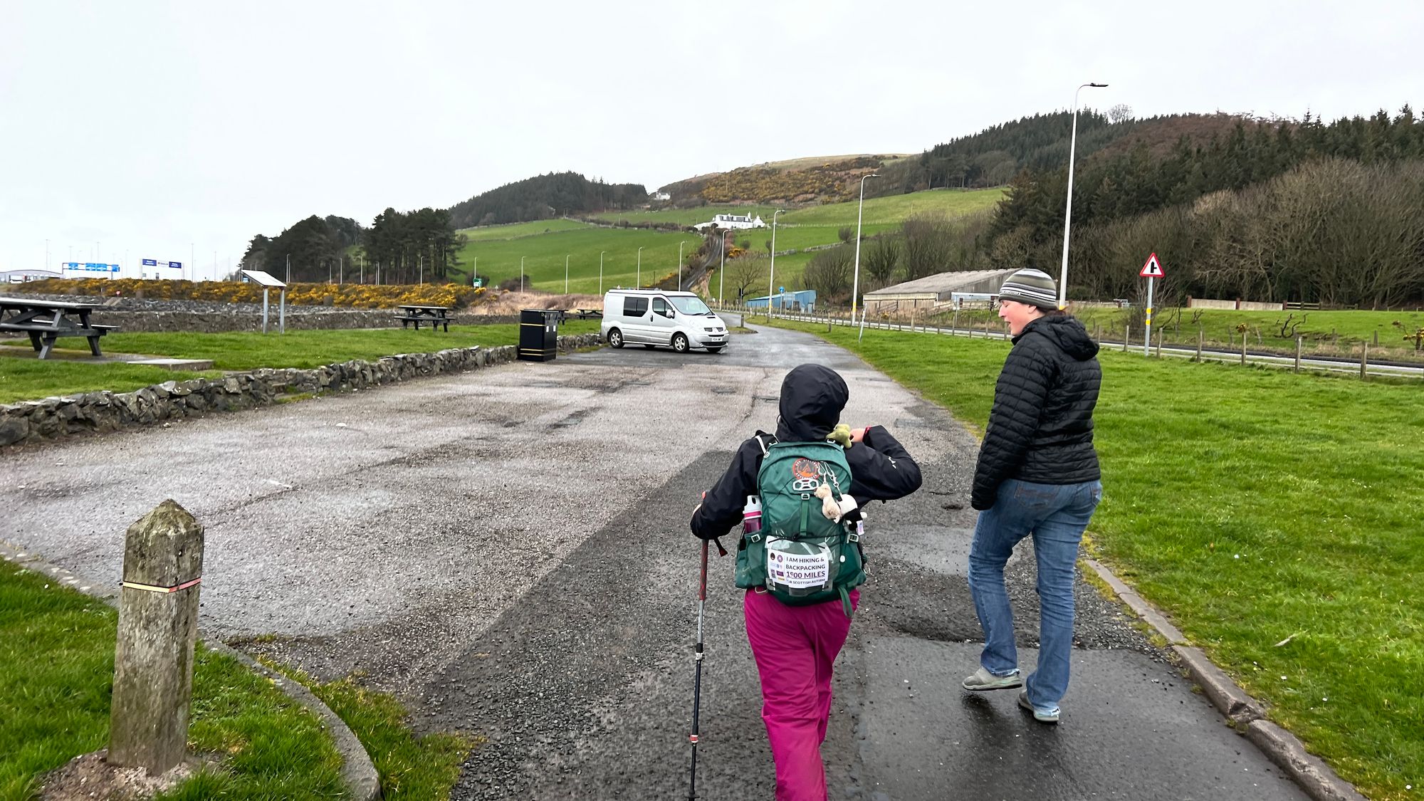 Continuing out of Cairnryan to the car park at Burnfoot Bridge we found Sarah sitting in the campervan waiting for us!
