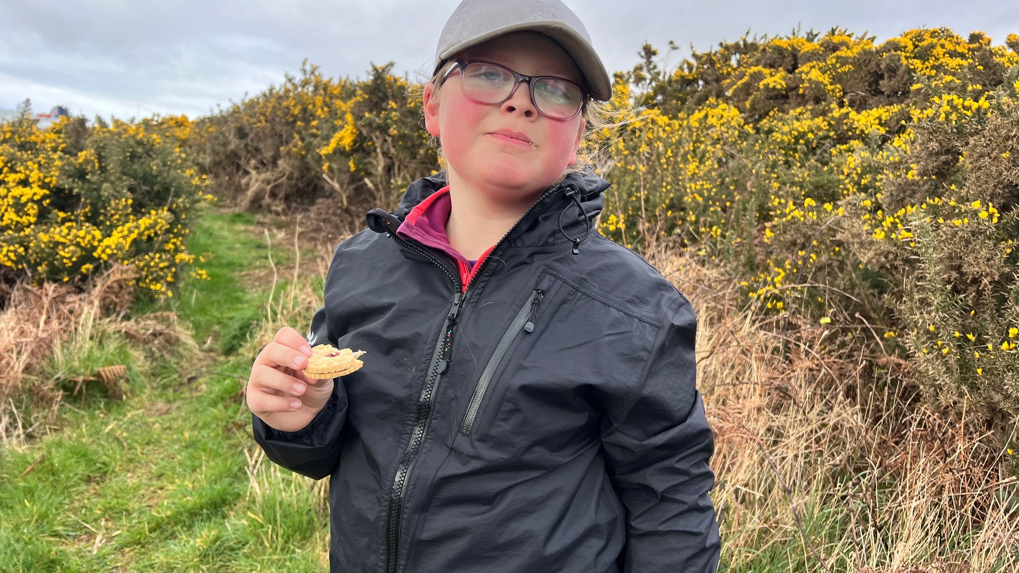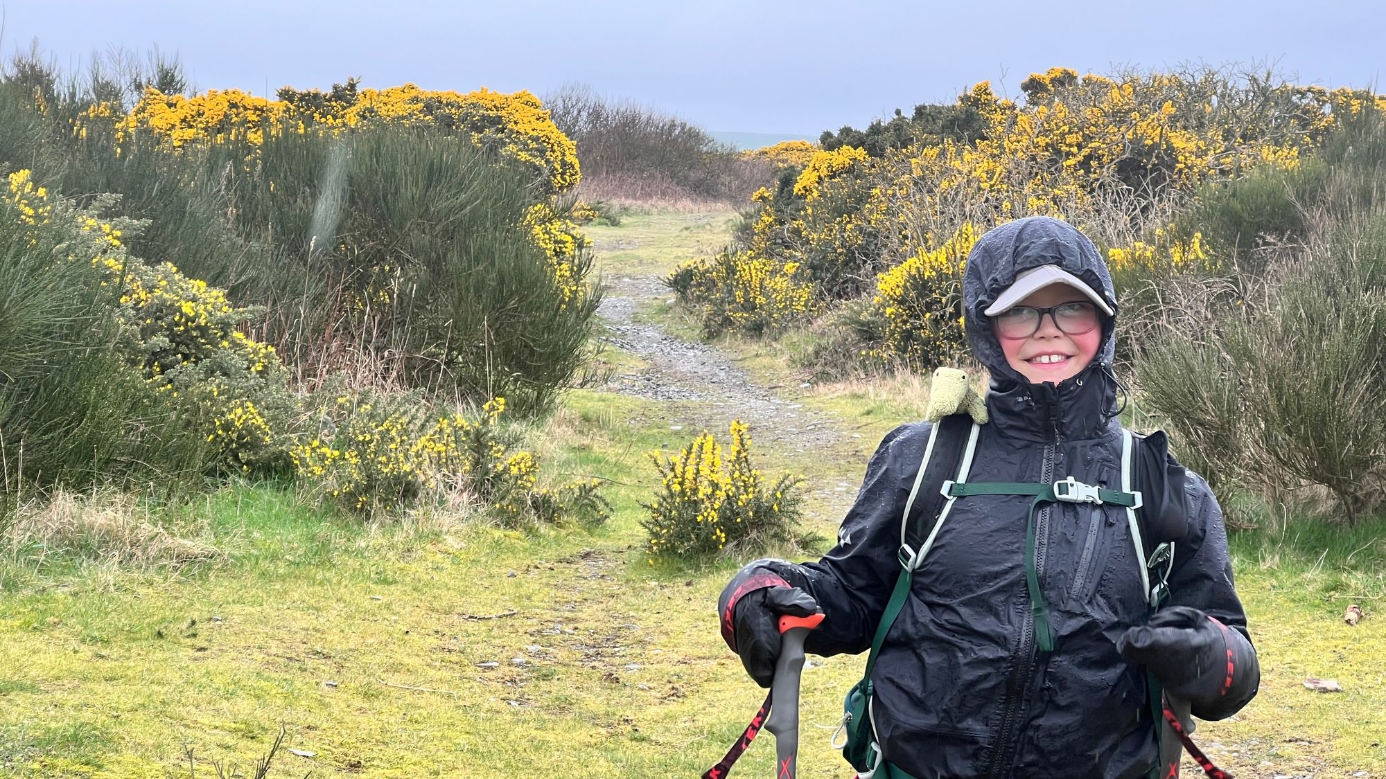 Anyway, we walked on finding a small dipper section to hide from the wind for a snack. As soon as we stopped and got our food out, the sky opened and we got drenched. We sat it out shouting to each other making fun of how wet it was. I did offer to put the emergency shelter up but Eve said “no, I don’t think it will last long”. 5 minutes later the rain had stopped. We sat for a bit longer then headed off feeling wet but much better for the rest and some sweet food (Eve had a slice of cheese and a cookie)