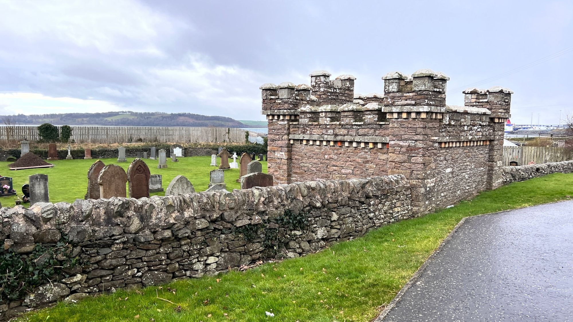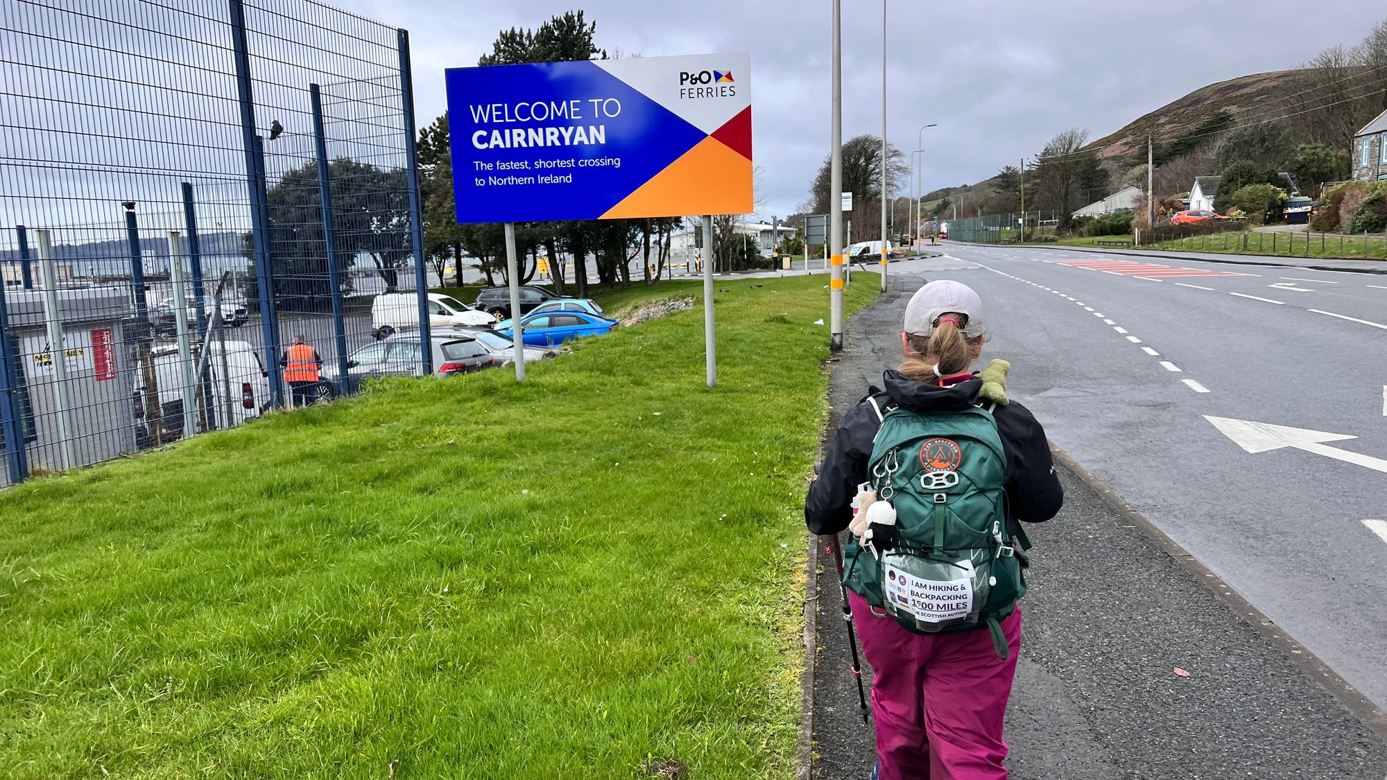 The port was big and it took us about 10 minutes to walk the length of it along the pavement before we reached the village of Cairnryan.