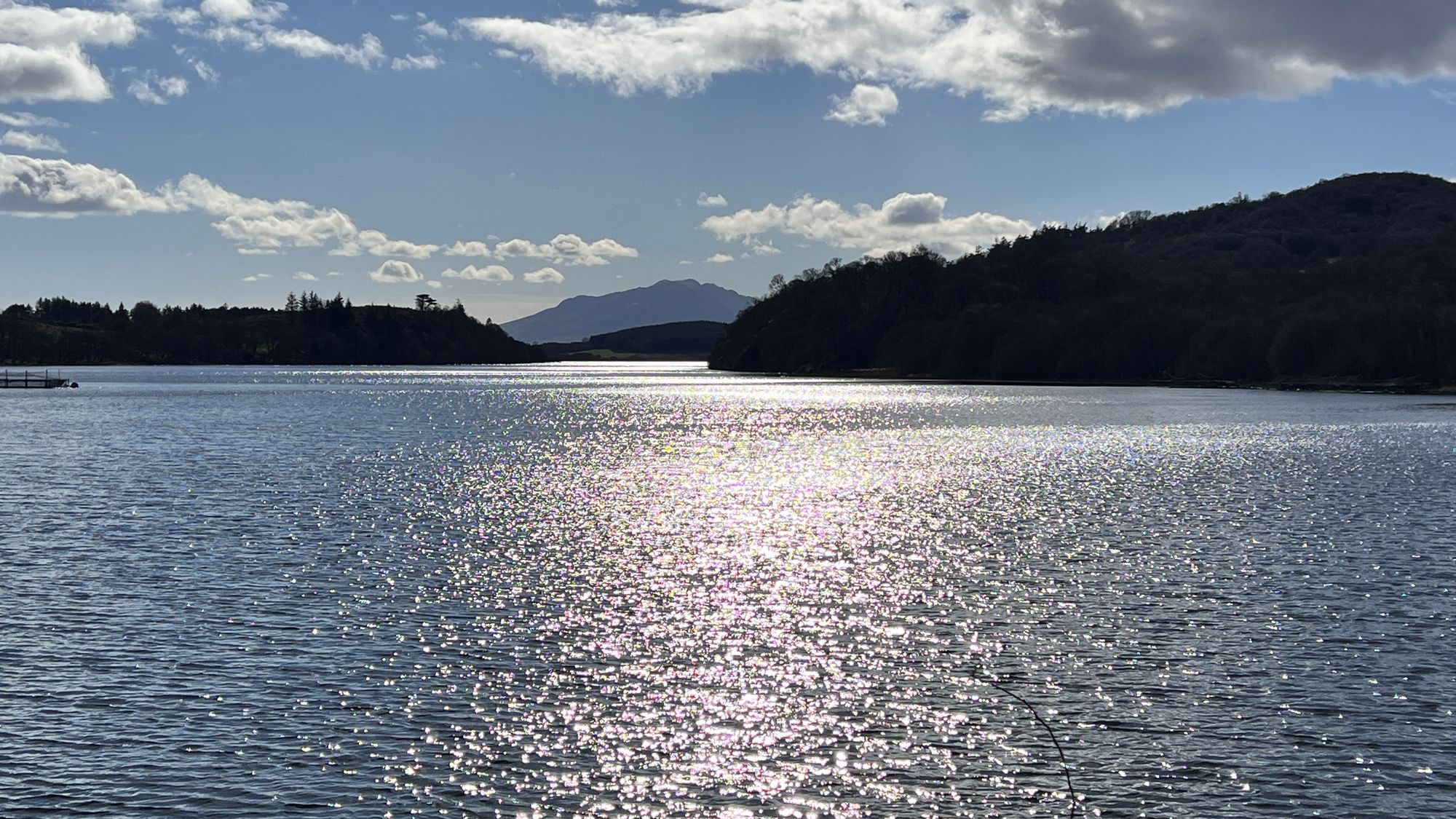 We crossed the B881 to descend towards Loch Fad to cross at the causeway. Again it was spectacular to look up the Loch towards the hills and mountains of the Isle of Aaron.