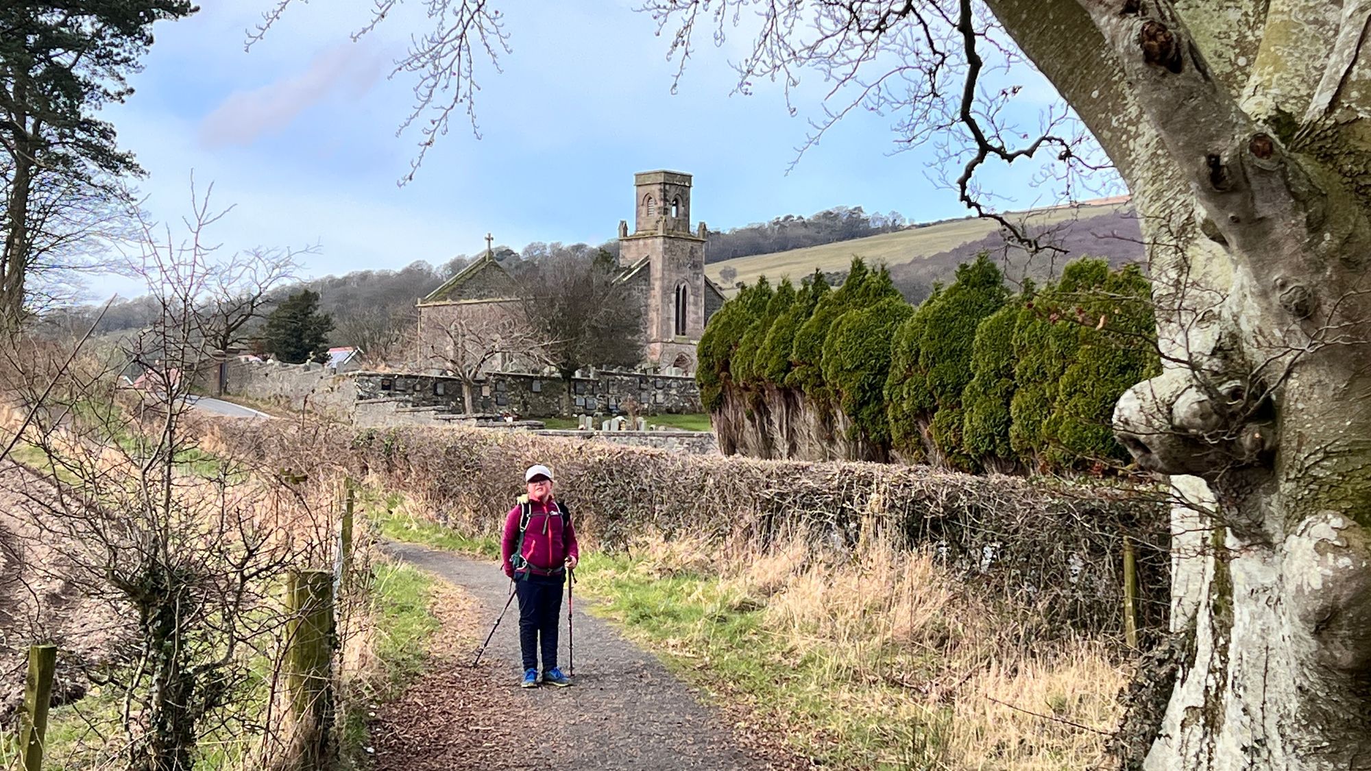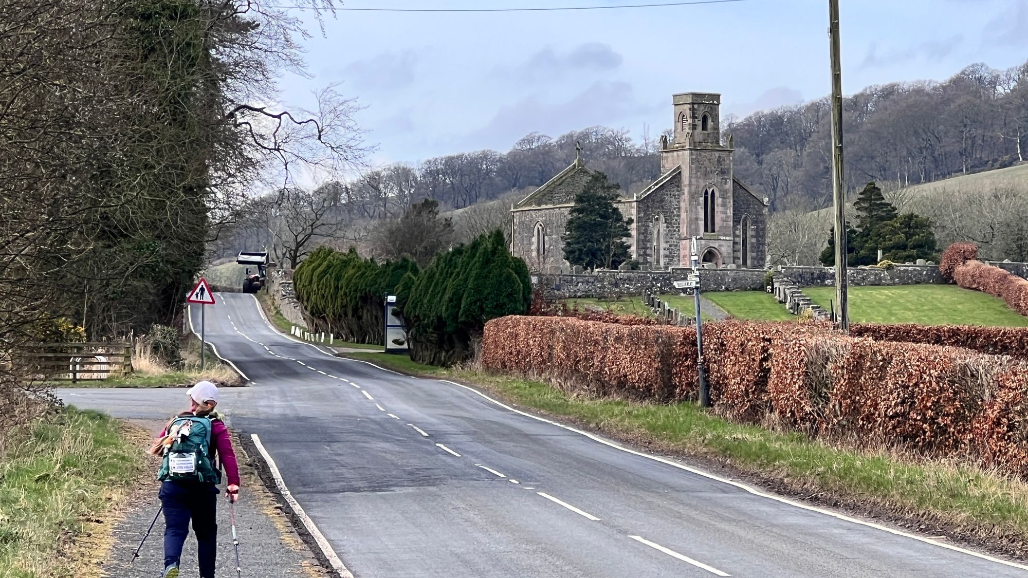 Walking along the road you could see the ruins of a church that looked impressive and would have made a great location for a break. Eve had other ideas, we kept walking!