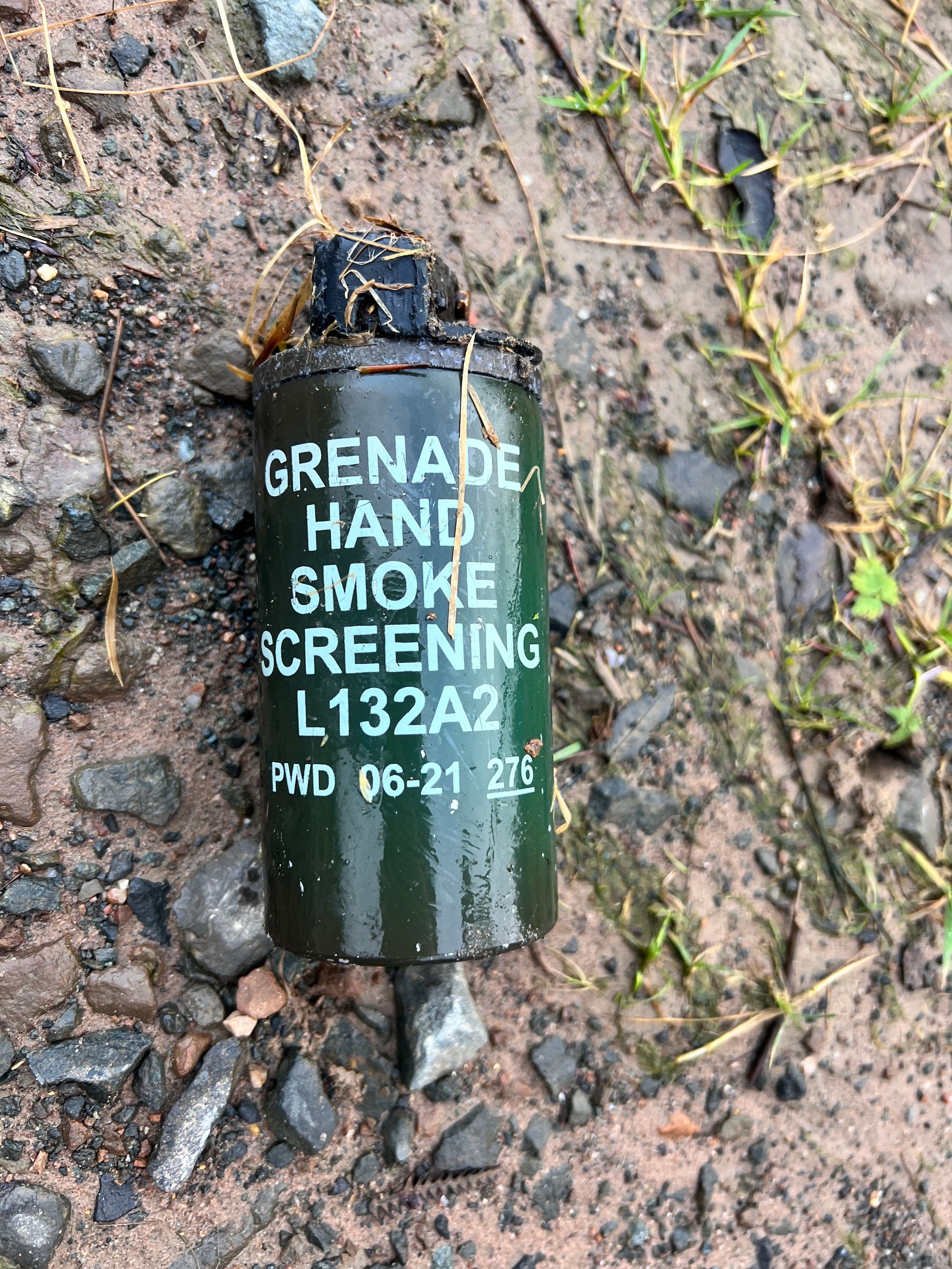 With the last few metres of trail before we reached the car we found an old smoke grenade!