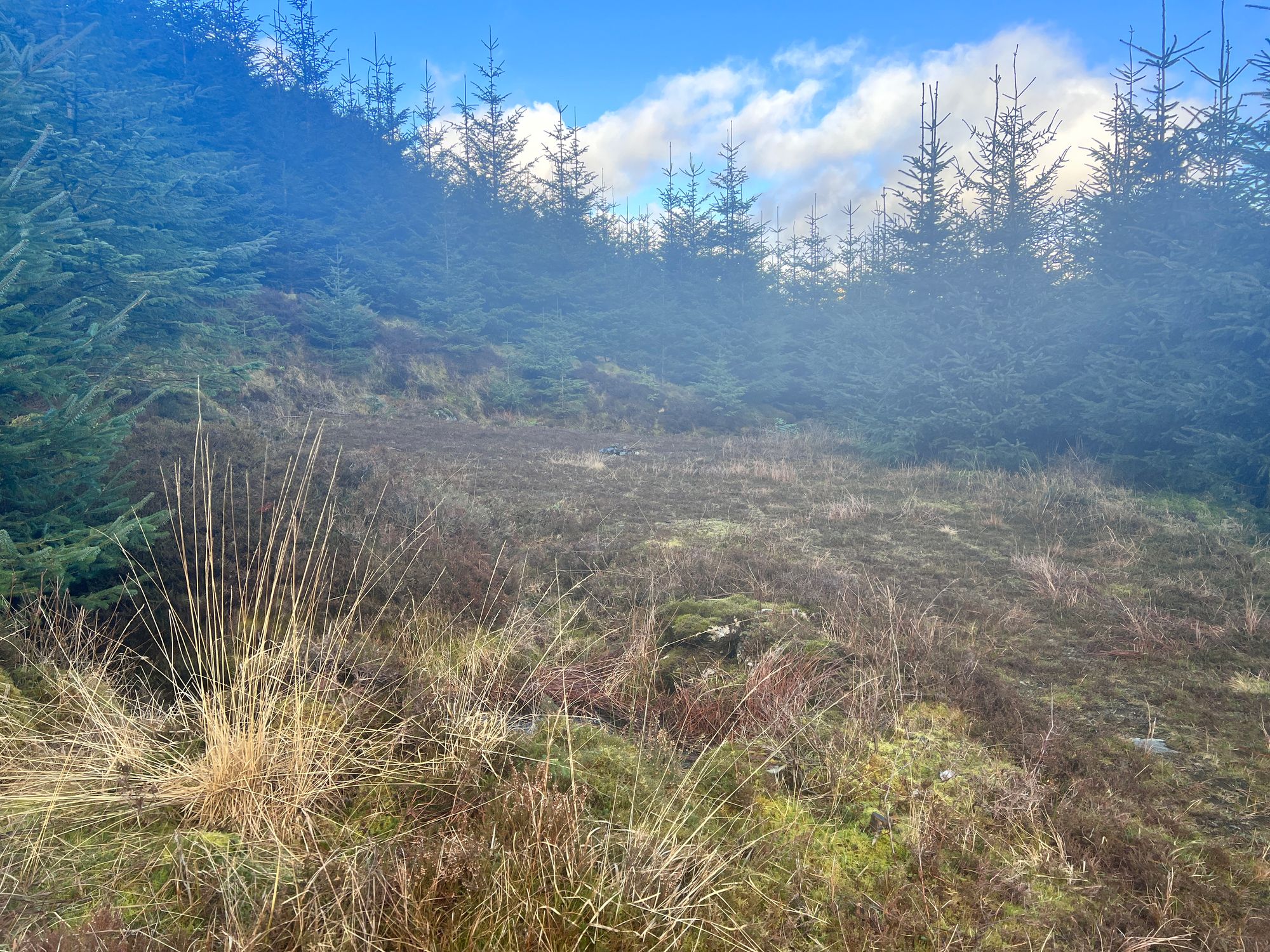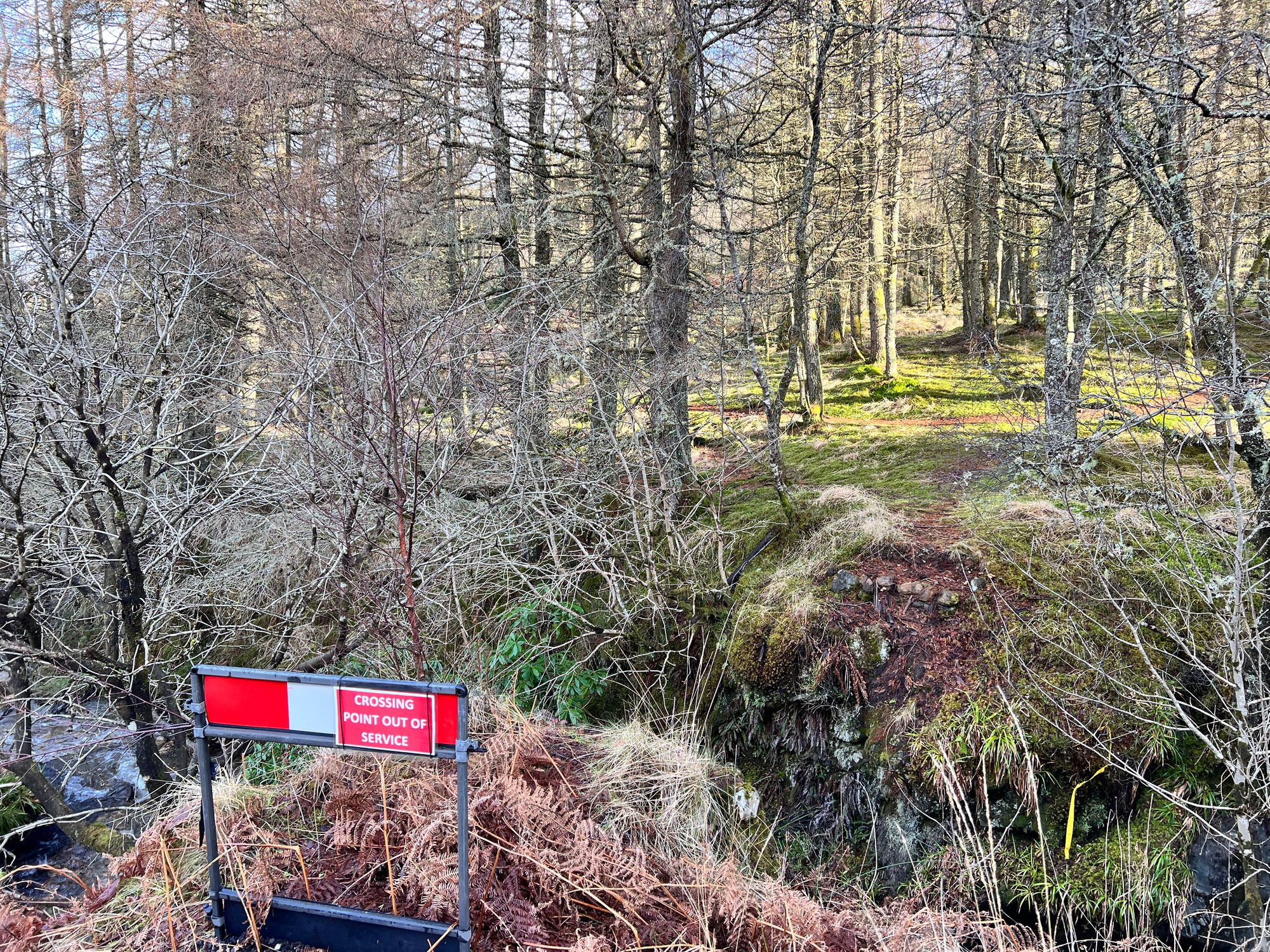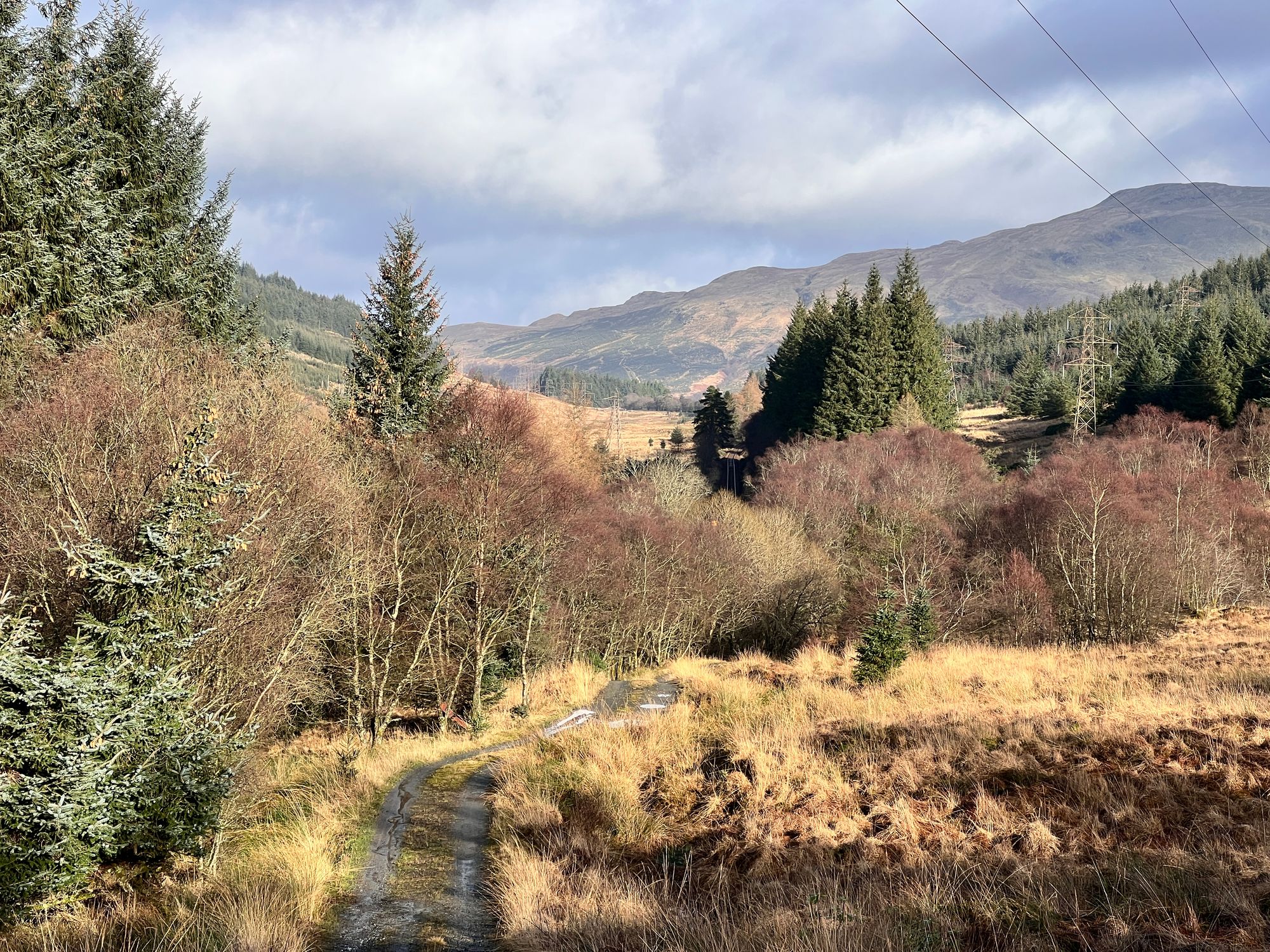 The problem was that a bridge crossing the burn was no longer there. It had been moved slightly further back up the trail closer to the railway bridge. The maps had not been updated. We crossed the bridge, went through a small area of trees following a faint trail and we were back on the correct path.