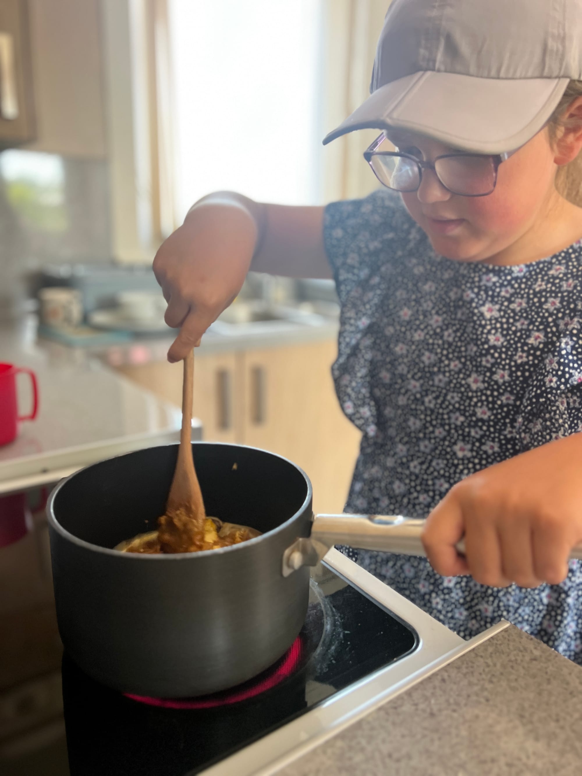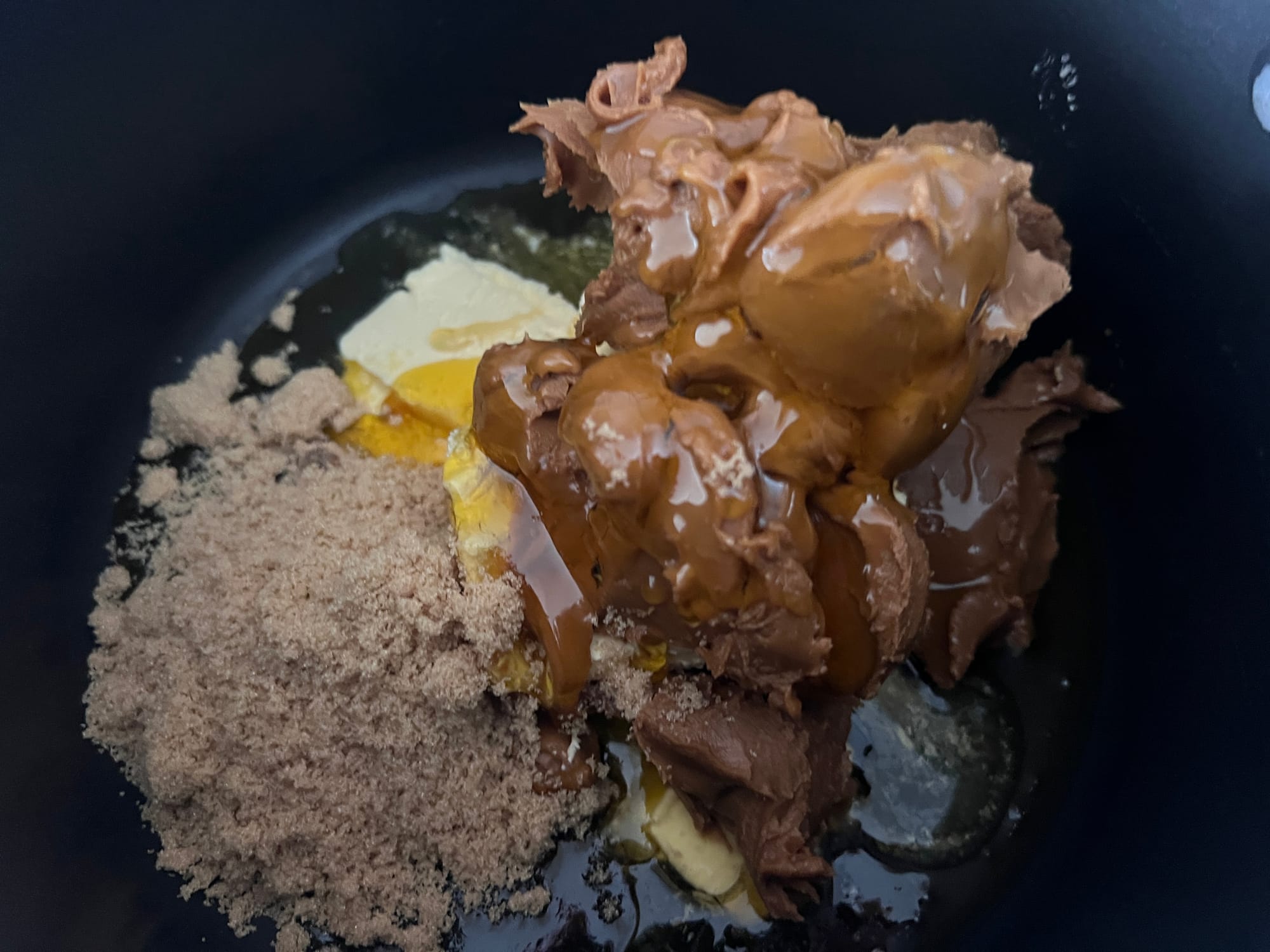 - Put the vegan butter, Biscoff spread, golden syrup and brown sugar in a saucepan and heat over a low heat, gradually stirring until melted and smooth. You should not feel any crunch from the sugar at the bottom of the pan.
