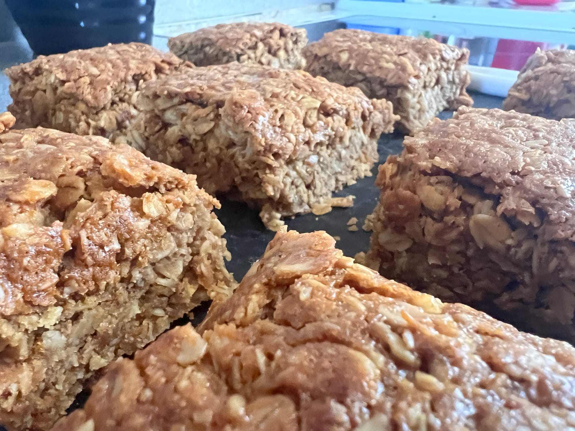 We mainly have it for lunch, but we also eat it for breakfast and dinner when food supplies are low. It packs well, doesn't break into pieces in your backpack, and doesn't feel like you're eating yesterday's stodgy porridge! This Biscoff flapjack is genuinely amazing!