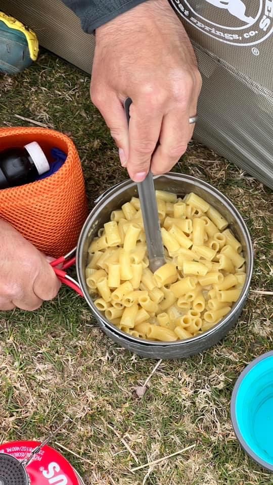 Dinner this evening was a three course banquet of soup followed by packet pasta and cheese with Easter chocolate for pudding!!!