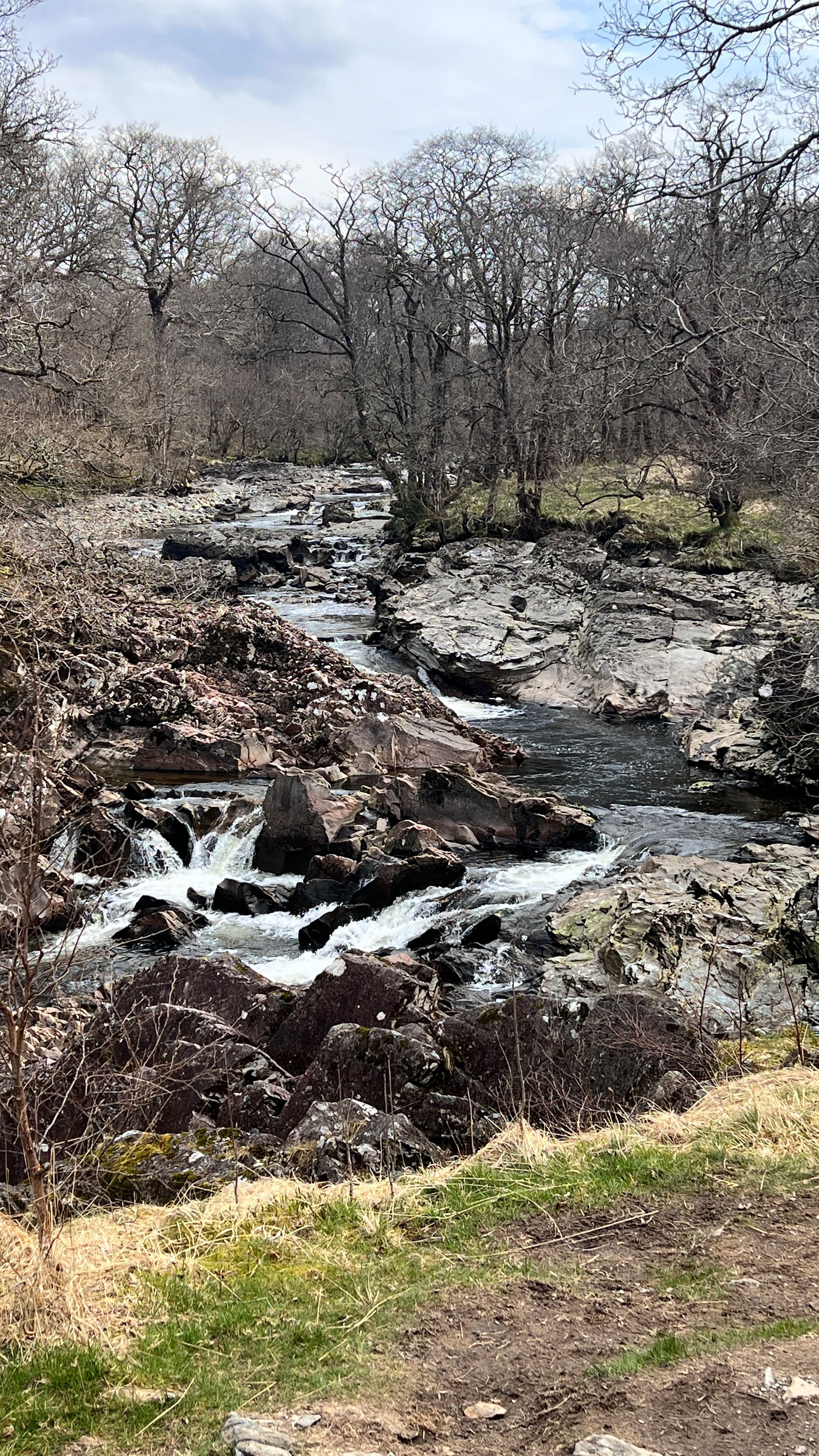 The walk today was really easy compared to the few days along Loch Lomond. Today we walked along Glen Falloch and passed the beautiful Falls of Falloch. It was wonderful, listening to the cascading water and looking at the plunge pools as we walked. The views around us looking up at the hills and mountains were spectacular, and Eve kept stopping to just look and stare. It’s an awe inspiring and inspirational sight!
