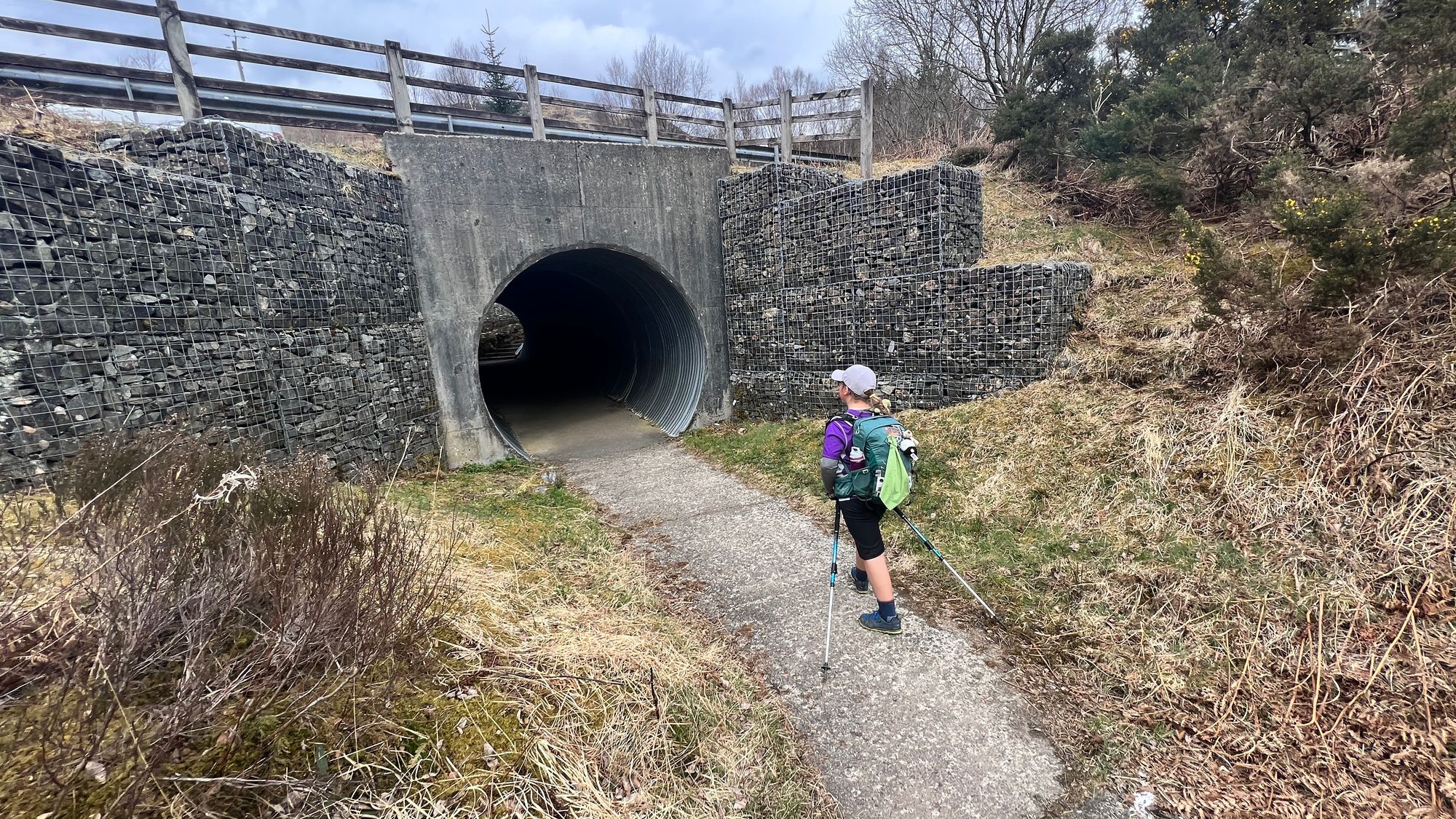 We had to walk through a couple of hikers tunnels that went under the railway line. One we could walk straight through however the second was more challenging as it’s actually made for sheep! As a consequence Eve had to stoop and I was about 2 inches away from being on my hands and knees! It’s was a surprising highlight of todays section as it’s such an odd obstacle to navigate on a hike.