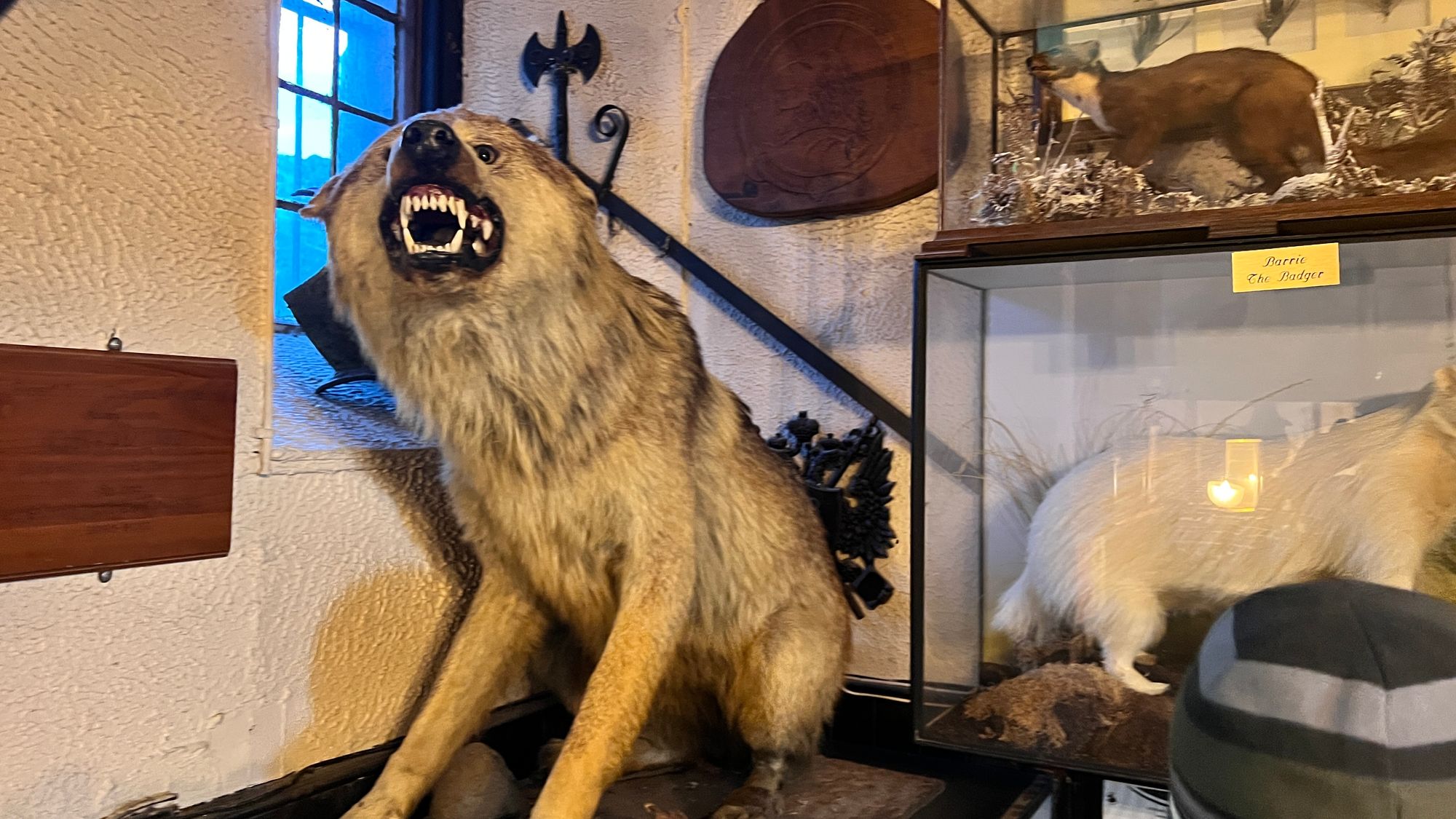 Last night, after I wrote the post, we popped to the Drovers Inn for a drink. The Drovers Inn is the quirkiest pub we have ever been to. It’s exactly how I would imagine a pub was about 100 years ago, with hundreds of taxidermist animals. Eve chose a J2O and me and Sarah had a non alcoholic beer. It was a lovely treat (Drovers Inn pictures at the end)